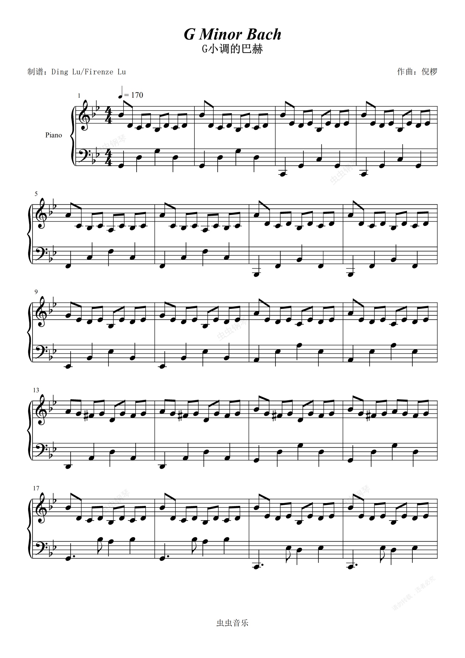 这首曲子由中国钢琴家倪椤根据巴赫平均律曲集中的《 and Fugue in C Minor, BWV. 847》改编而来,是他在大学期间写的钢琴独奏小作品。倪椤毕业于武汉音乐学院,现居广西,从事钢琴教育与演艺工作。这首曲子在固定的节奏之间流露着起伏的情绪,快而不乱。它是一场跨越东西、古今的对话。“音乐无国界”,这首曲子在 上的多个翻弹版本便是最好的诠释。这个版本对左手部分做了一定简化,降低了演奏难度。
