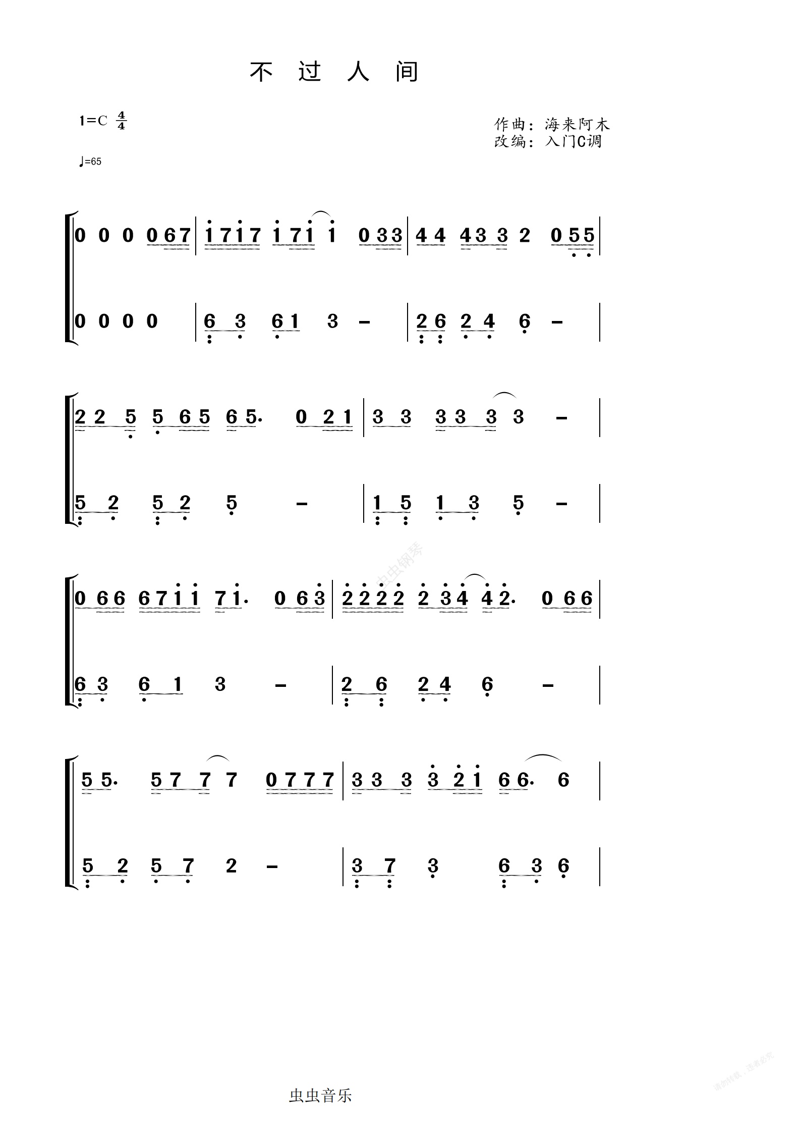 钢琴谱:海来阿木《不过人间》C调入门简谱