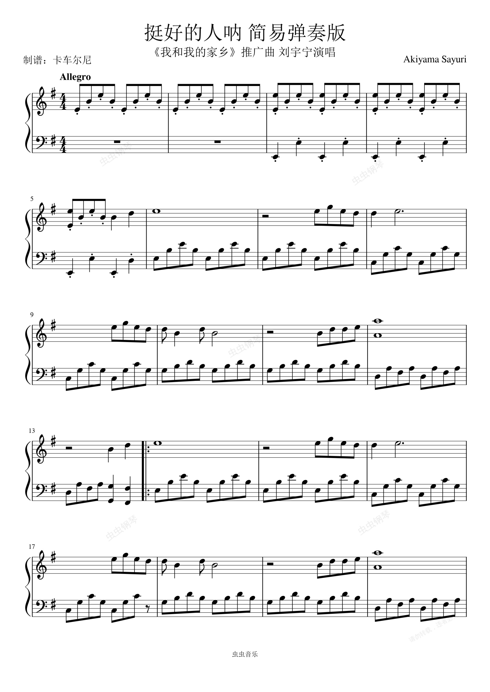 钢琴谱:《我和我的家乡》挺好个人呐 简易版