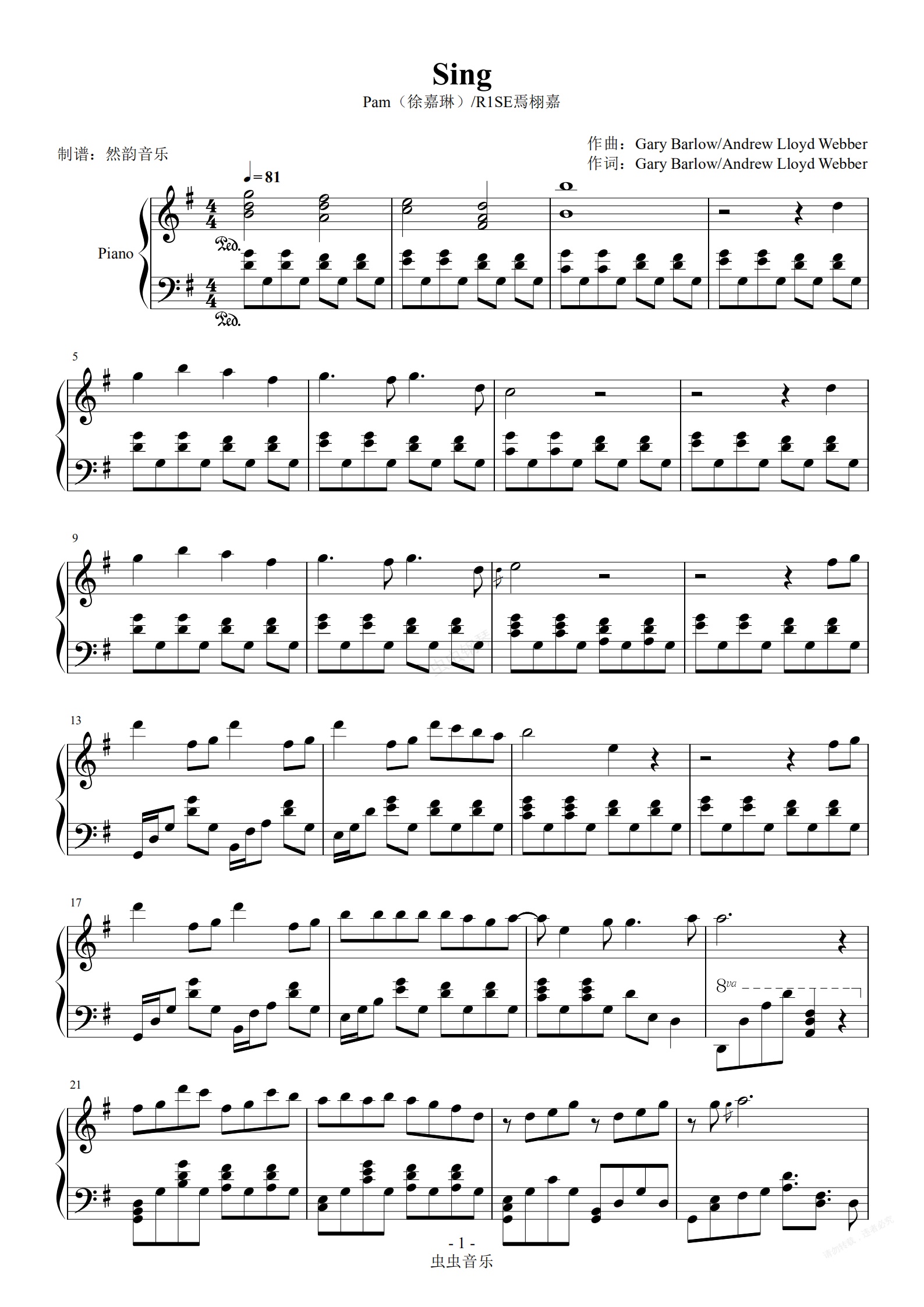 钢琴谱:【然韵音乐】Sing-R1SE焉栩嘉&Pam徐嘉琳 明日之子第八期