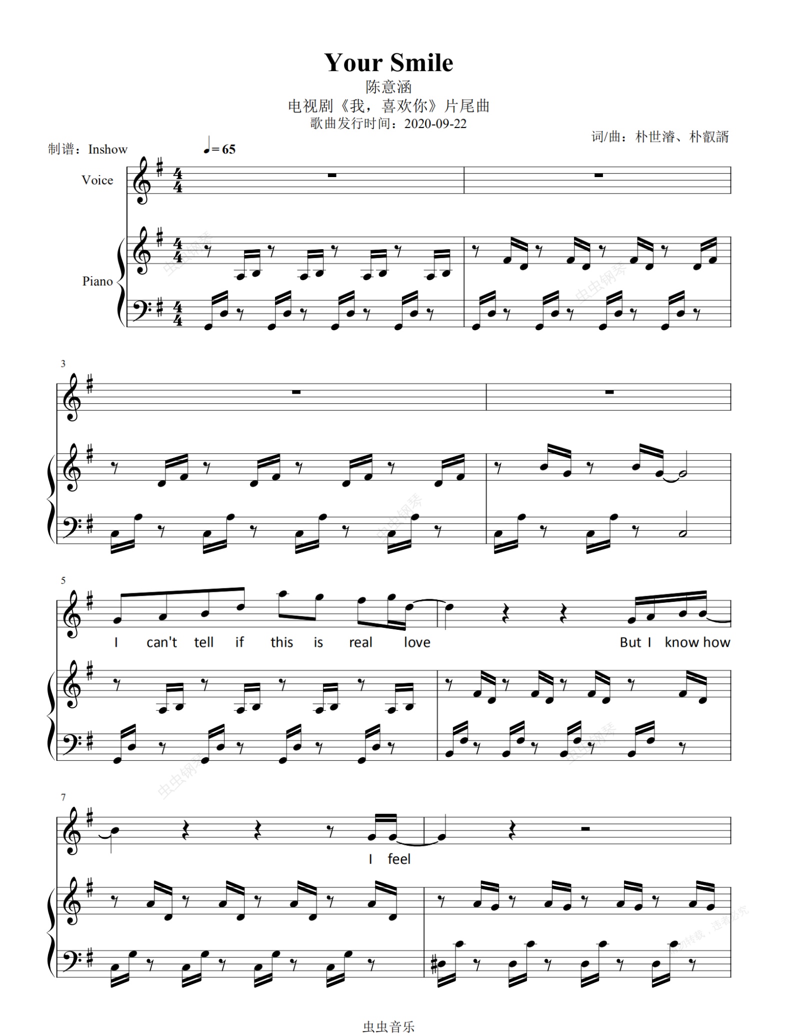 钢琴谱:陈意涵 - Your Smile【弹唱谱】(电视剧《我,喜欢你》片尾曲)