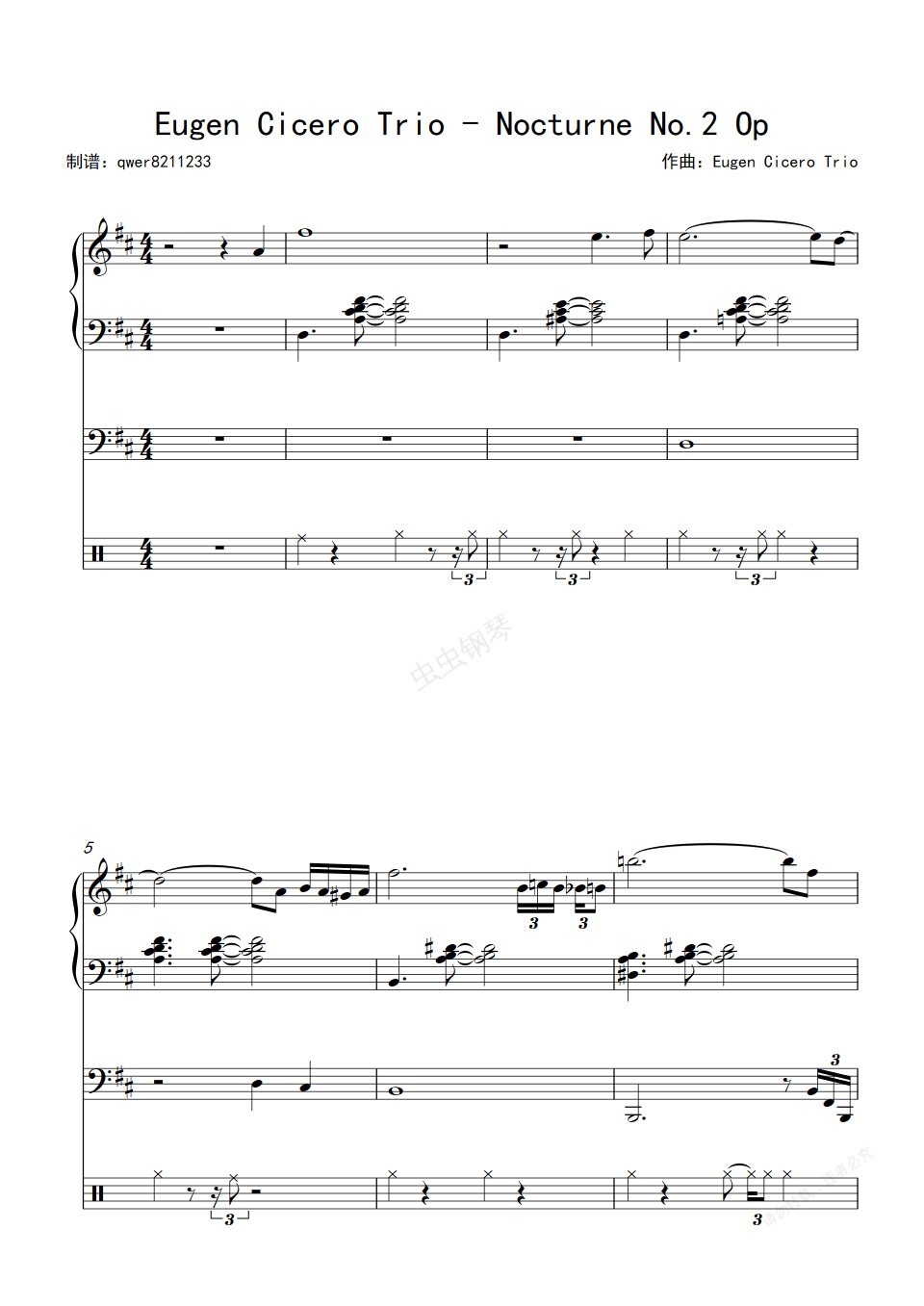 钢琴谱:Eugen Cicero Trio - Nocturne No.2 Op(夜曲)