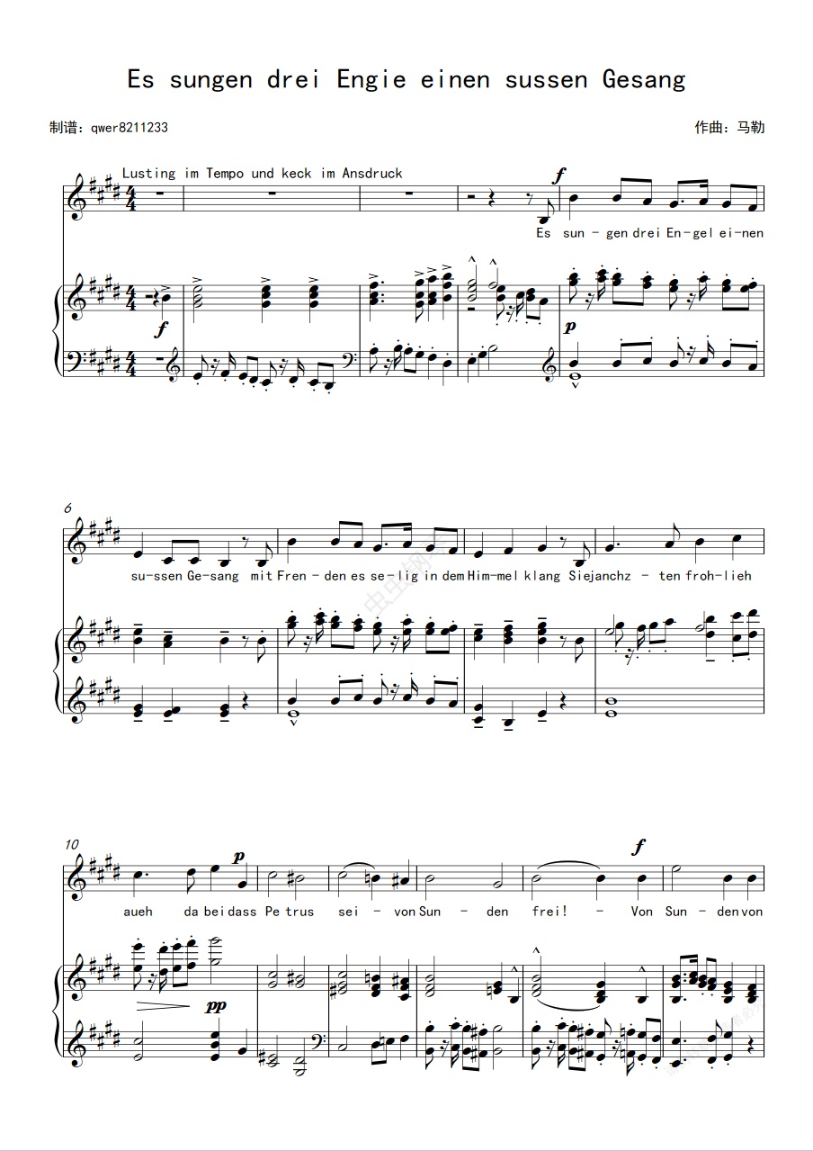 钢琴谱:Es sungen drei Engie einen sussen Gesang