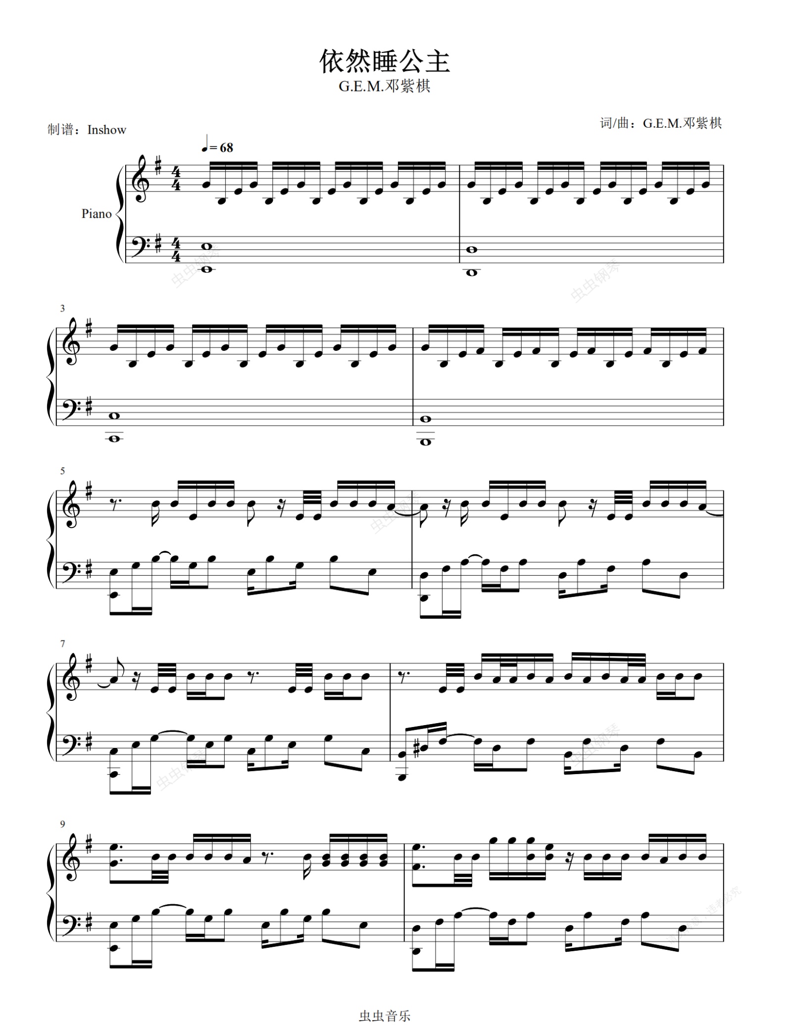 钢琴谱:依然睡公主【独奏谱】 - G.E.M.邓紫棋 -