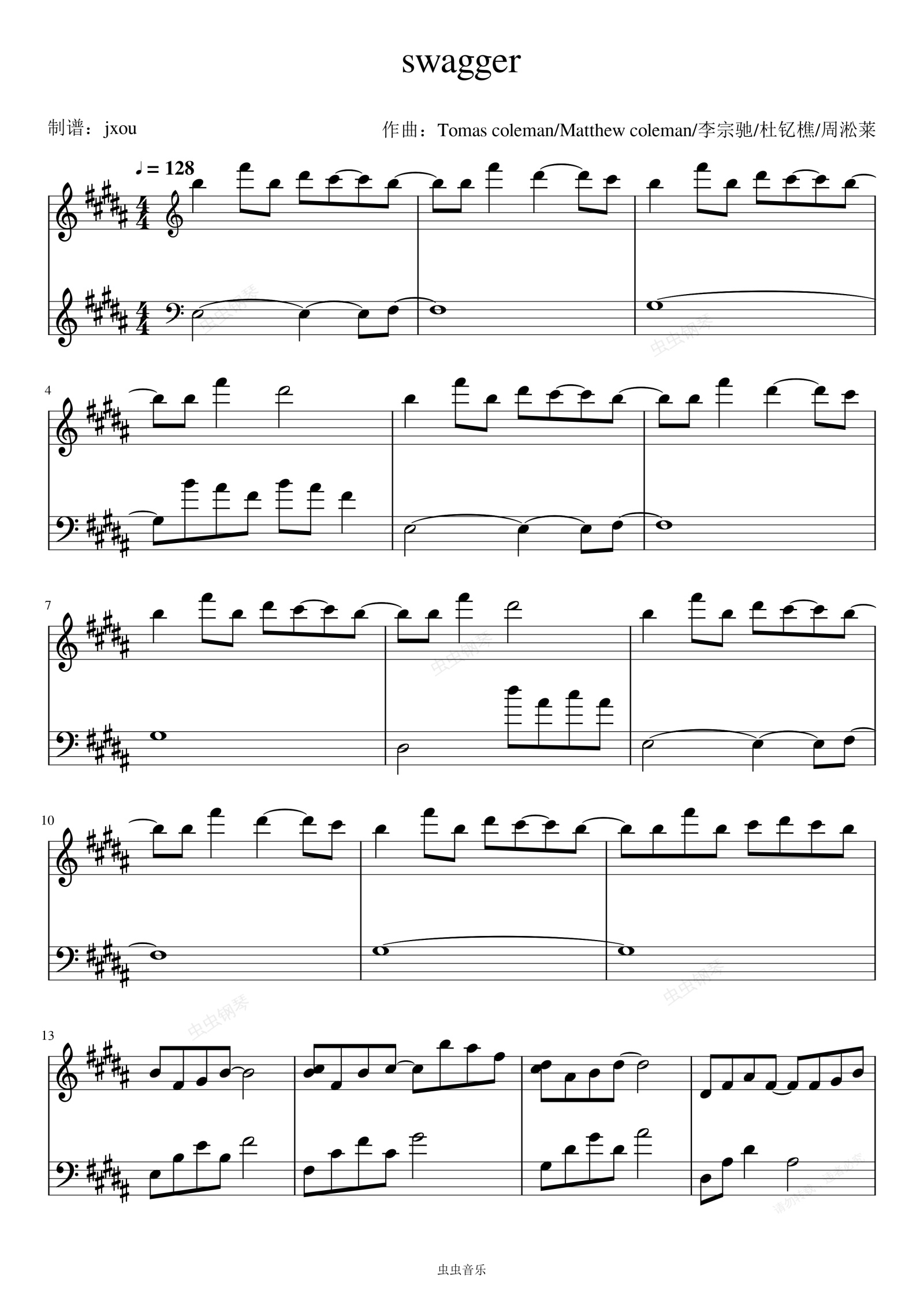 钢琴谱:Swagger B调唯美还原版 (溯Reverse)