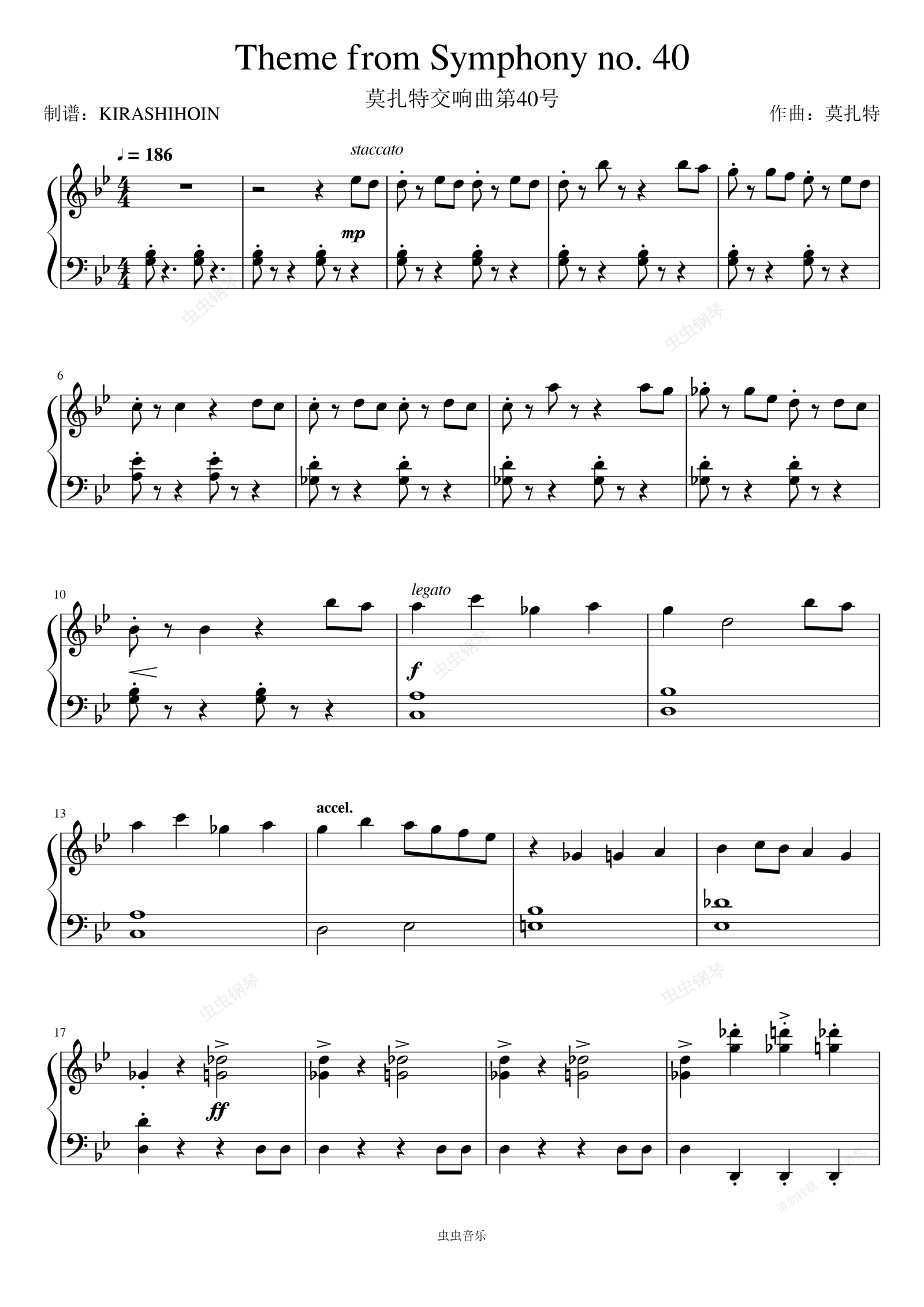 钢琴谱:Theme from Symphony no. 40/莫扎特交响曲第40号