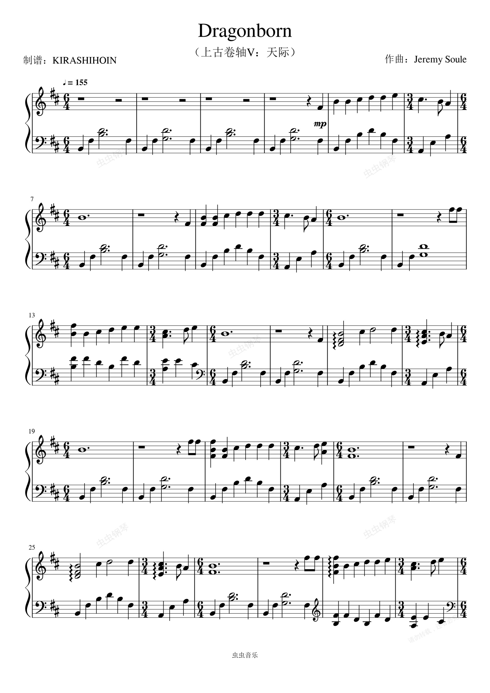 钢琴谱:Dragonborn/上古卷轴5:天际插曲