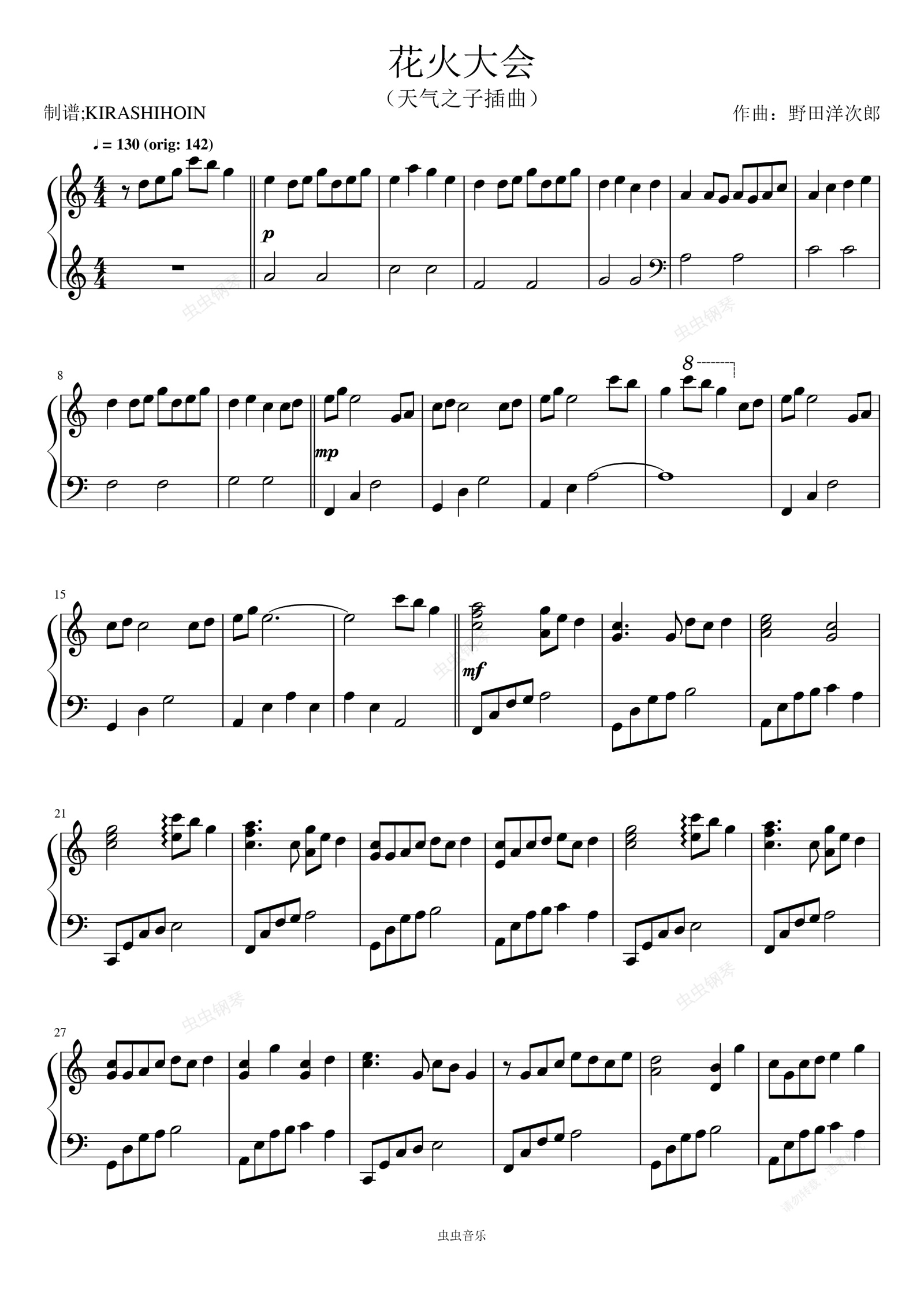 钢琴谱:花火大会/天气之子插曲