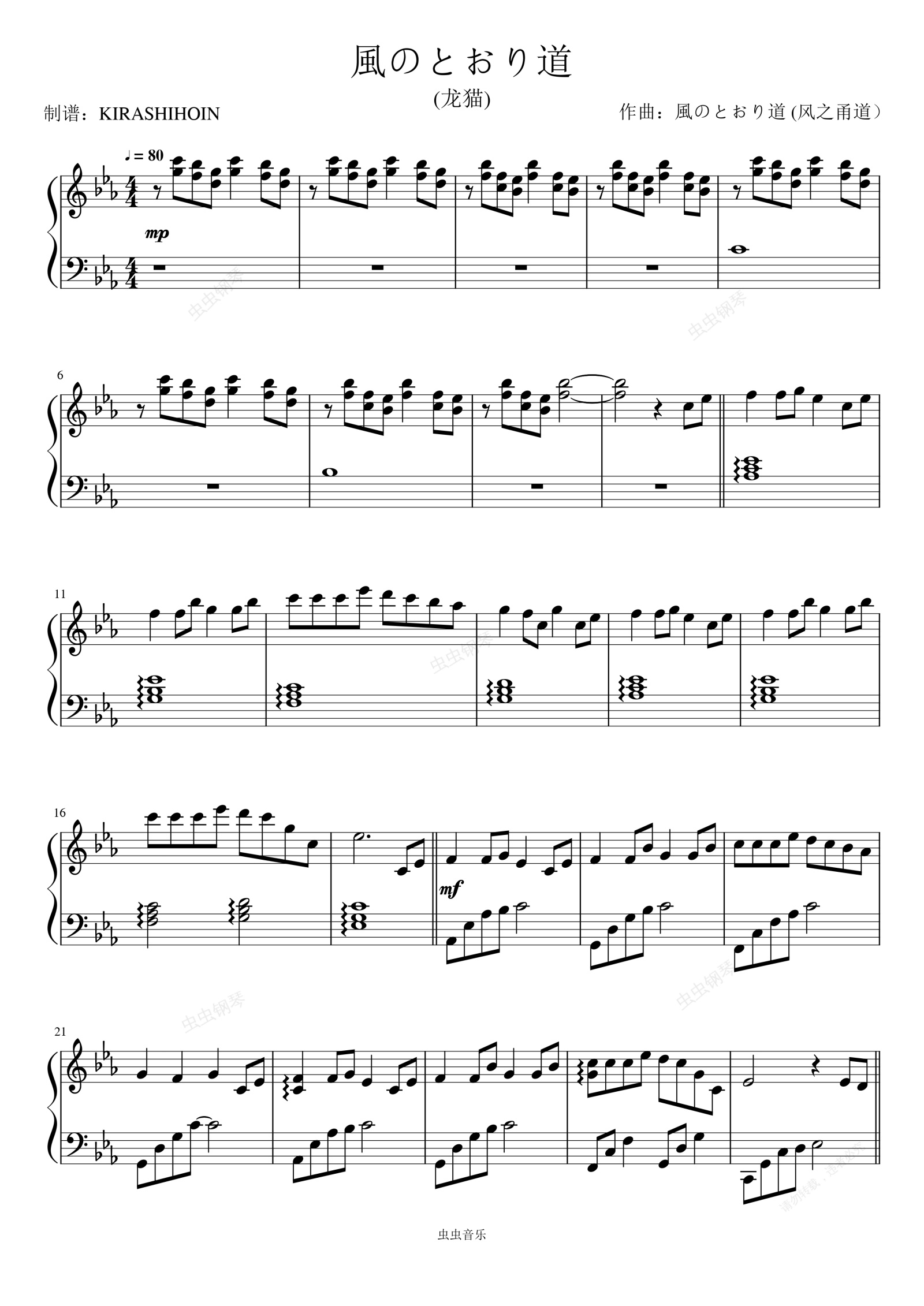 钢琴谱:風のとおり道 (风之甬道)/龙猫插曲