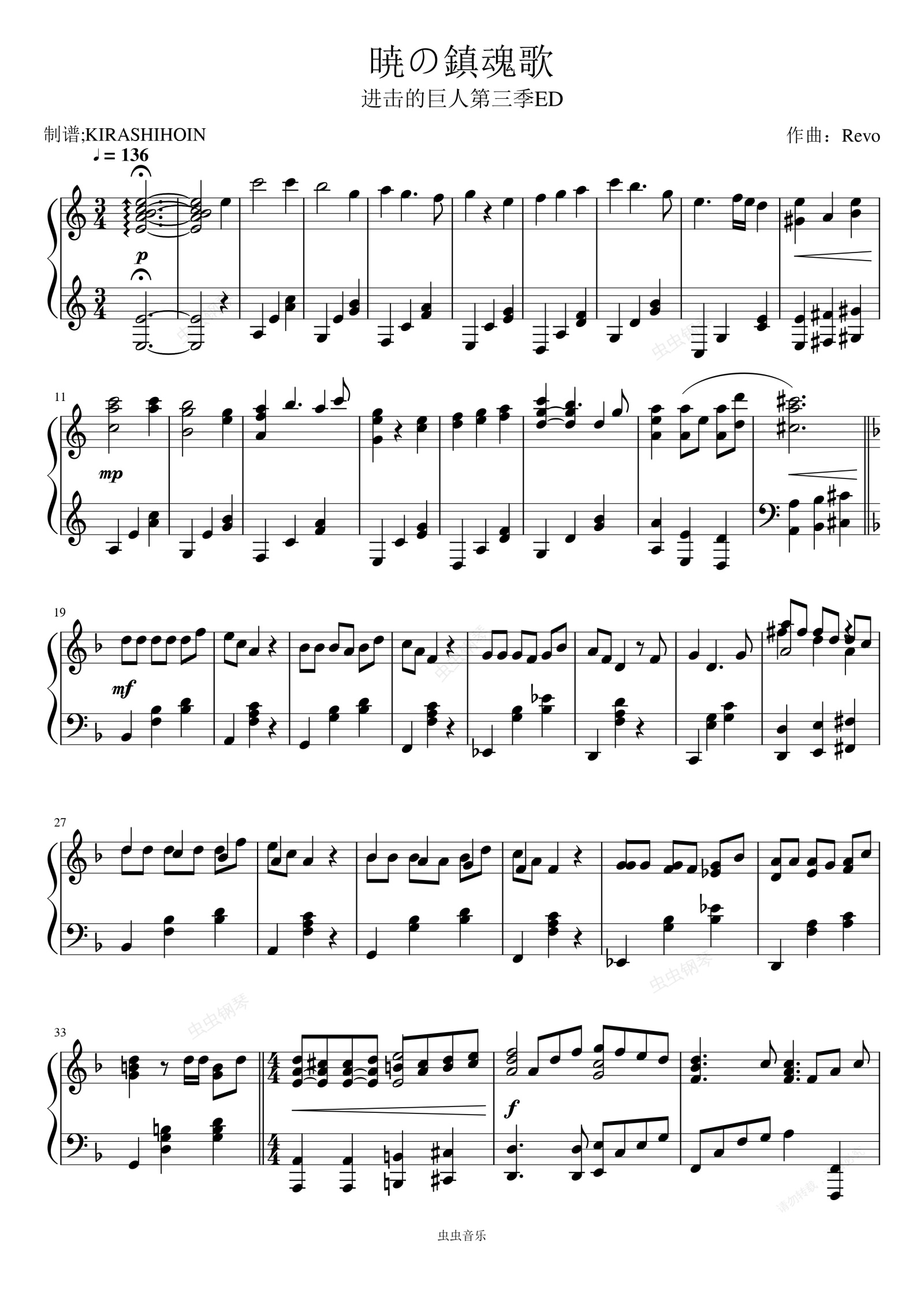 钢琴谱:暁の鎮魂歌/进击的巨人第三季ED