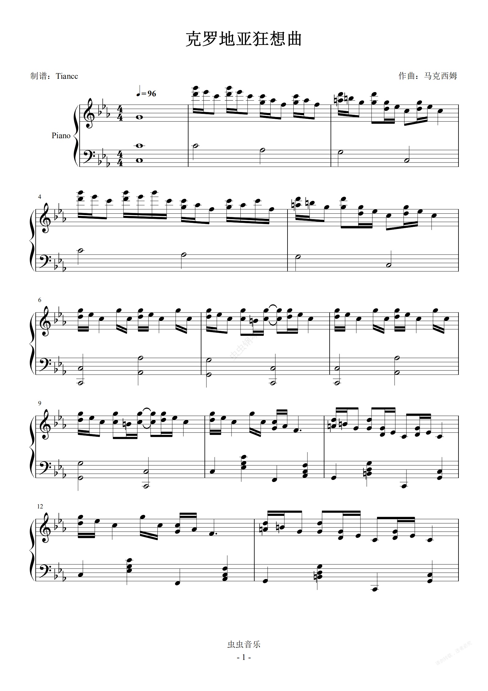 钢琴谱:《克罗地亚狂想曲》完美可弹优化版---849难度