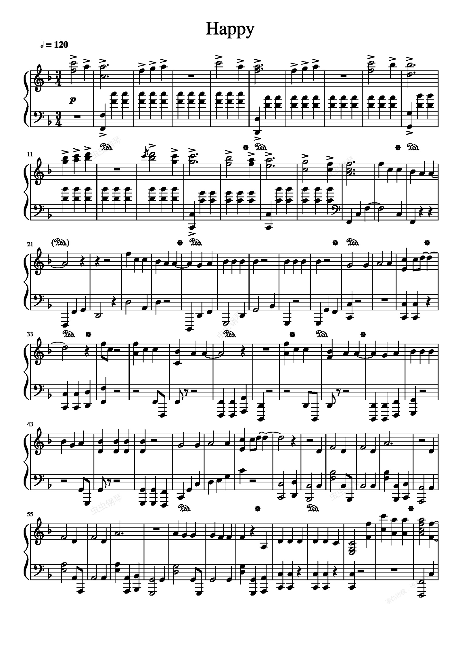 钢琴谱:Happy