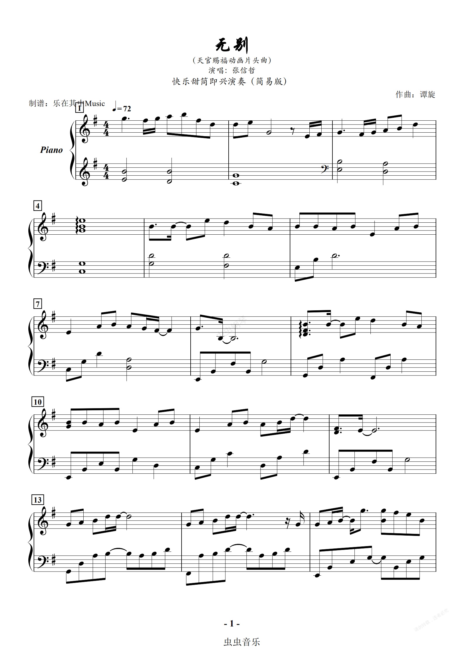 钢琴谱:无别(首发)简易版
