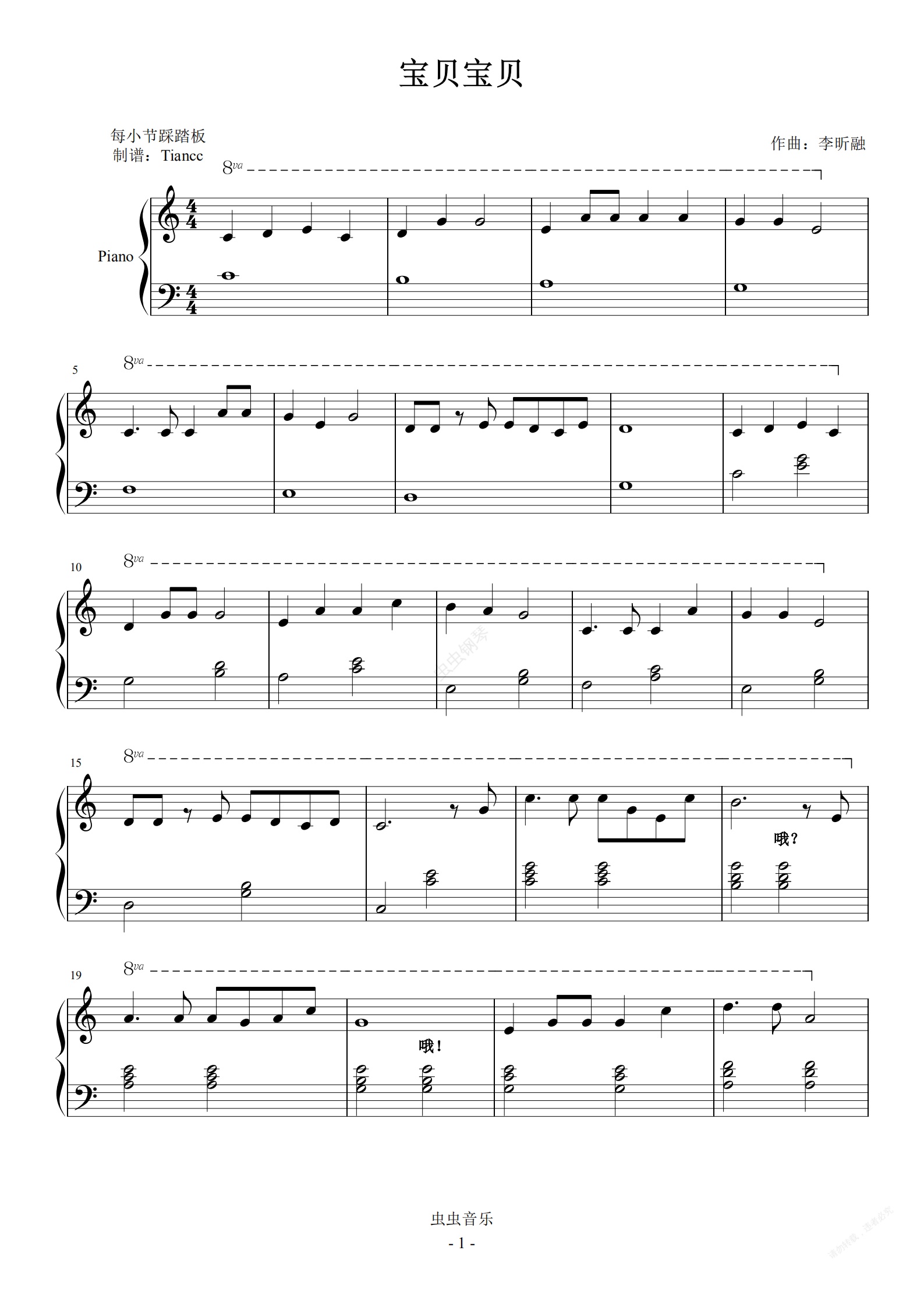 钢琴谱:《宝贝宝贝》小汤3难度,好听,好弹,还能唱