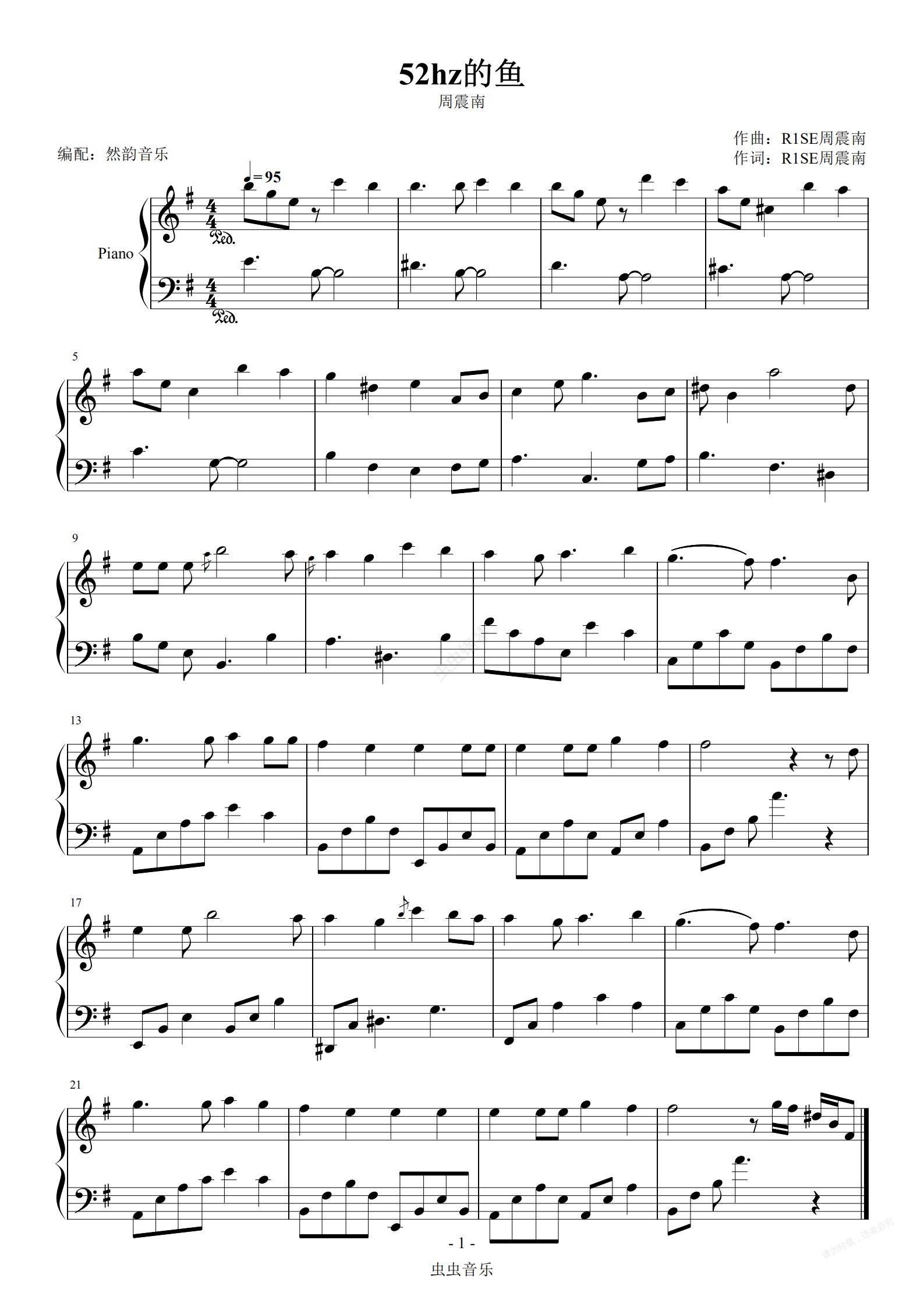 钢琴谱:【然韵音乐】52hz的鱼-R1SE周震南 简单易学