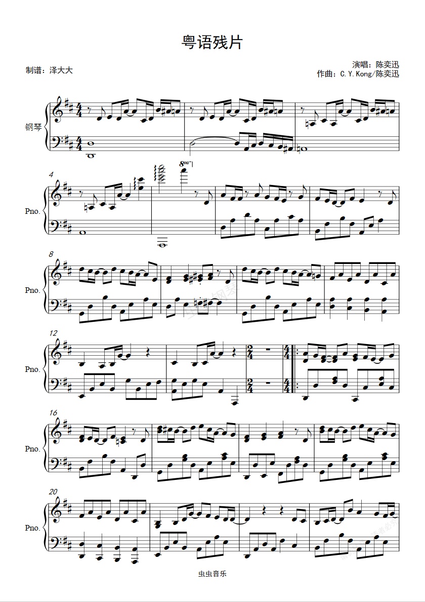 钢琴谱:粤语残片【完美独奏版】