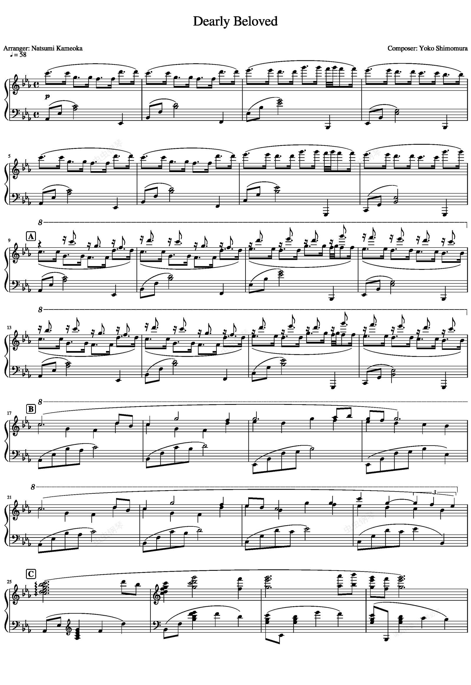 钢琴谱:Dearly Beloved原版精校对