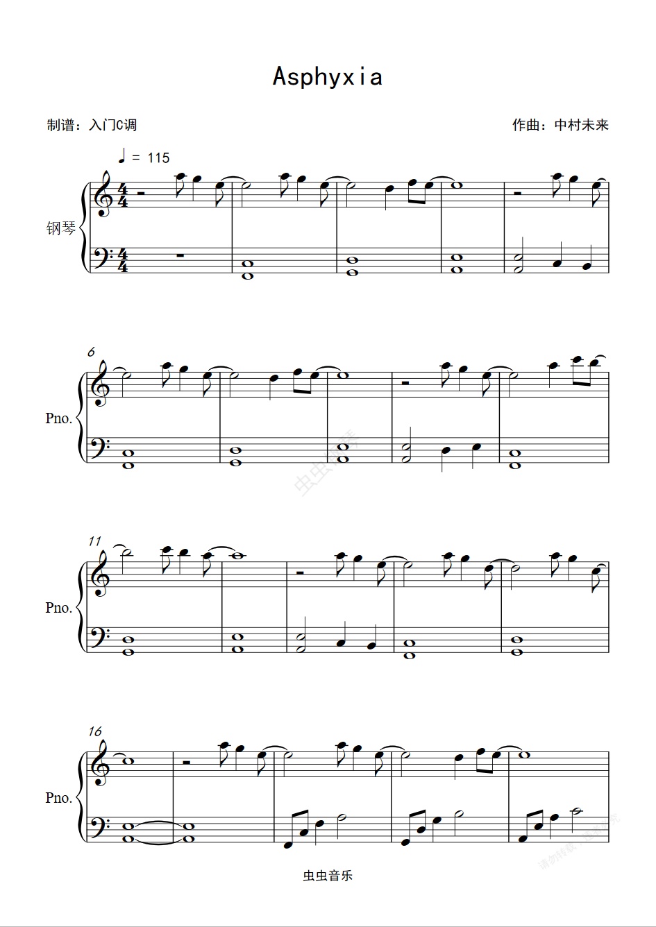 钢琴谱:逆时针向《asphyxia》C调简单版
