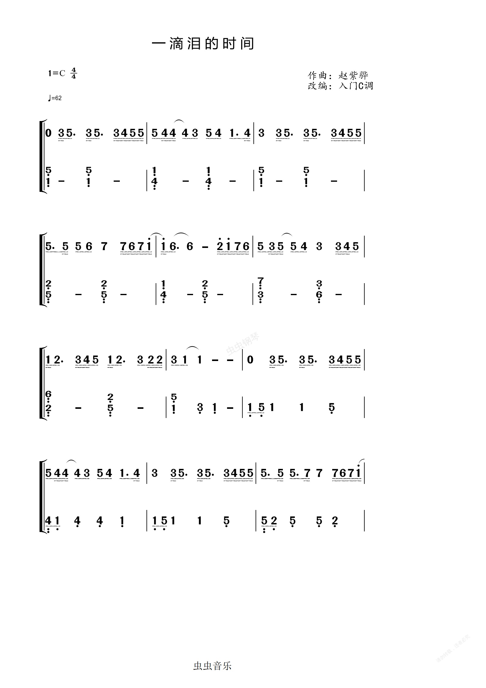 钢琴谱:赵紫骅《一滴泪的时间》C调简单版