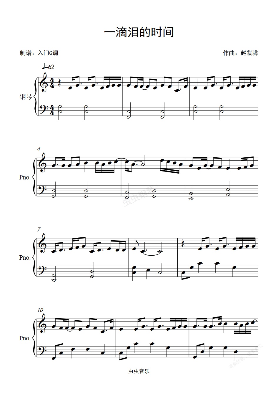 钢琴谱:赵紫骅《一滴泪的时间》入门简单版简谱