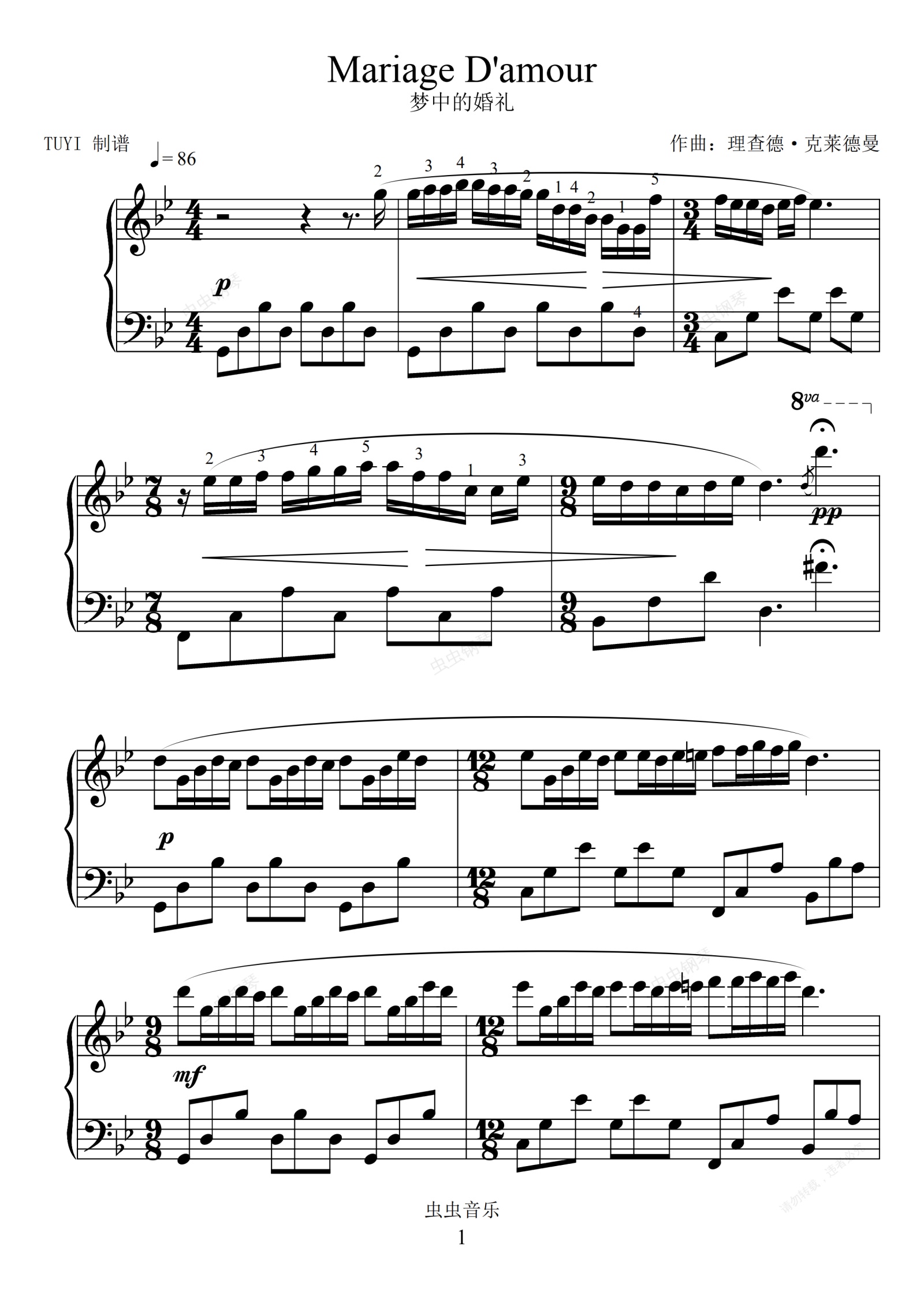 钢琴谱:梦中的婚礼【原版易弹】- 理查德·克莱德曼