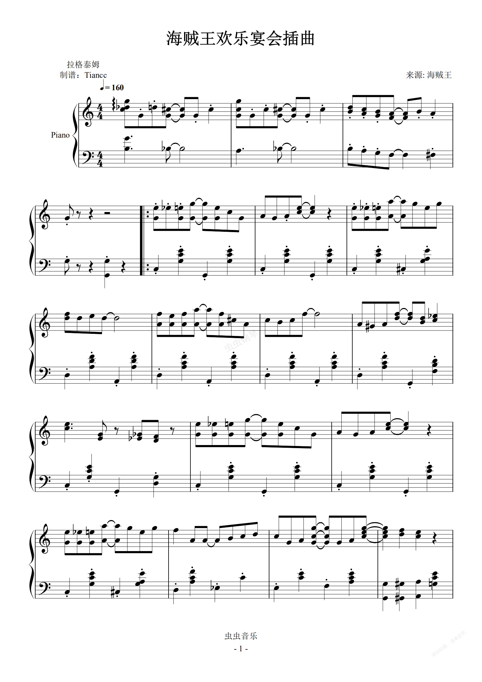 钢琴谱:《海贼王欢乐宴会插曲》完美可弹谱