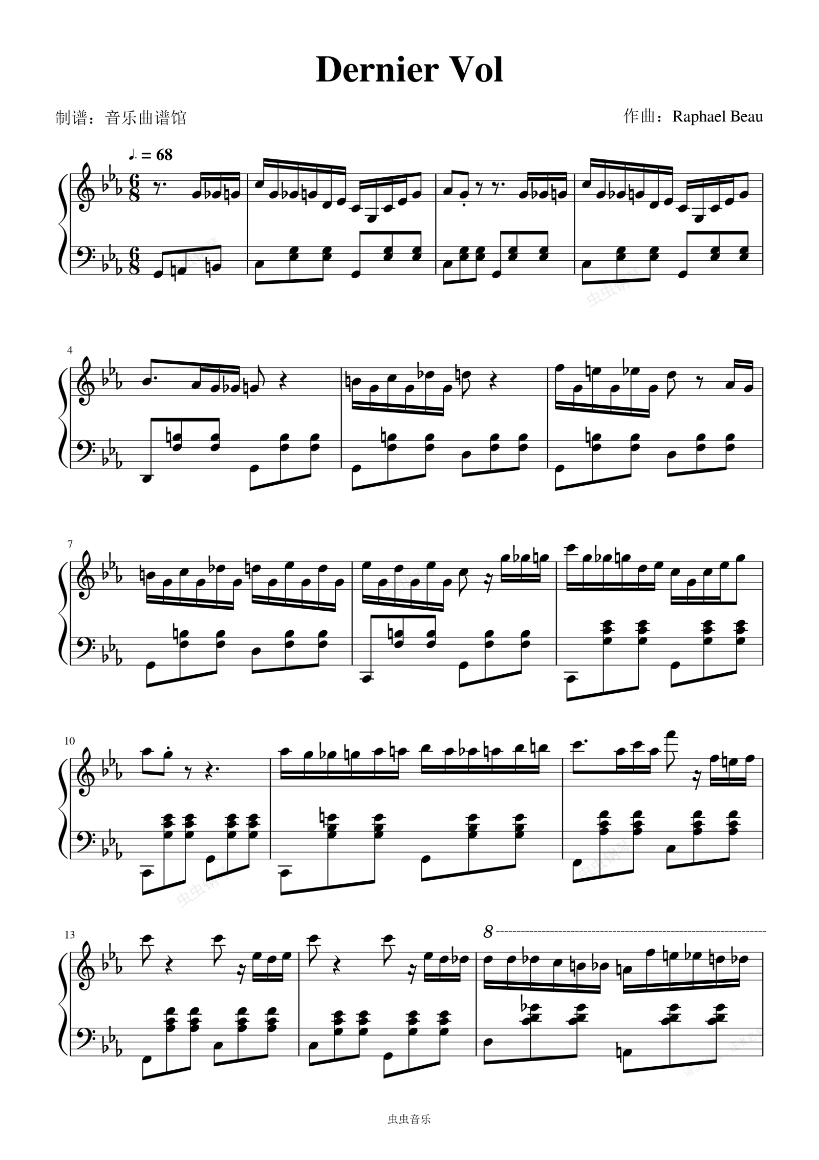 钢琴谱:Dernier Vol-Raphael Beau Raphaël Beau 电影《尽情游戏》的插曲 又名《子弹头大复仇》漫长的婚约