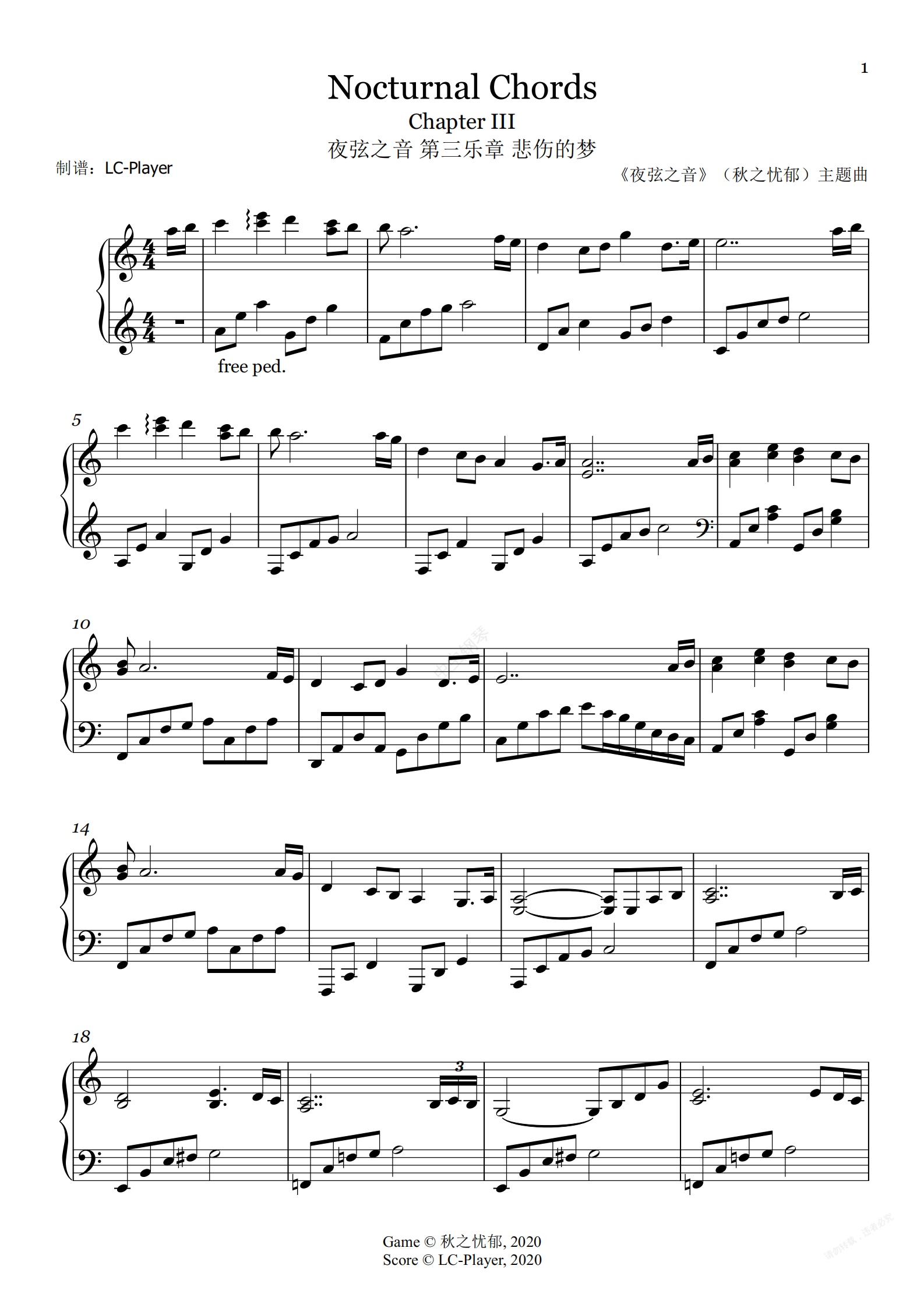 钢琴谱:夜弦之音(Nocturnal Chords)第三章 悲伤的梦