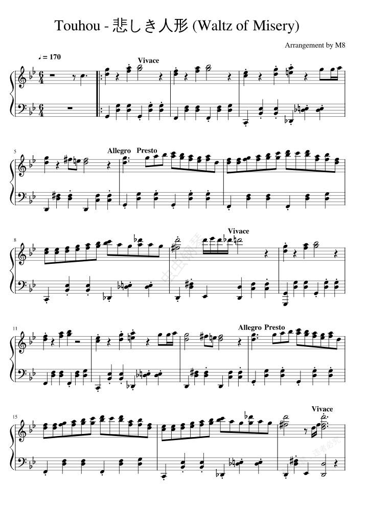 钢琴谱:【东方曲再编】悲しき人形 (Waltz of Misery)