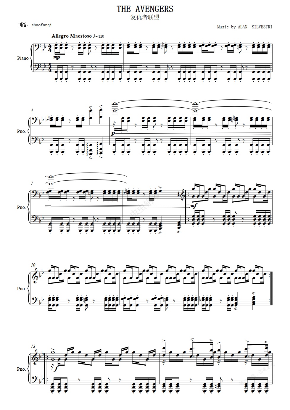 钢琴谱:复仇者联盟主题曲