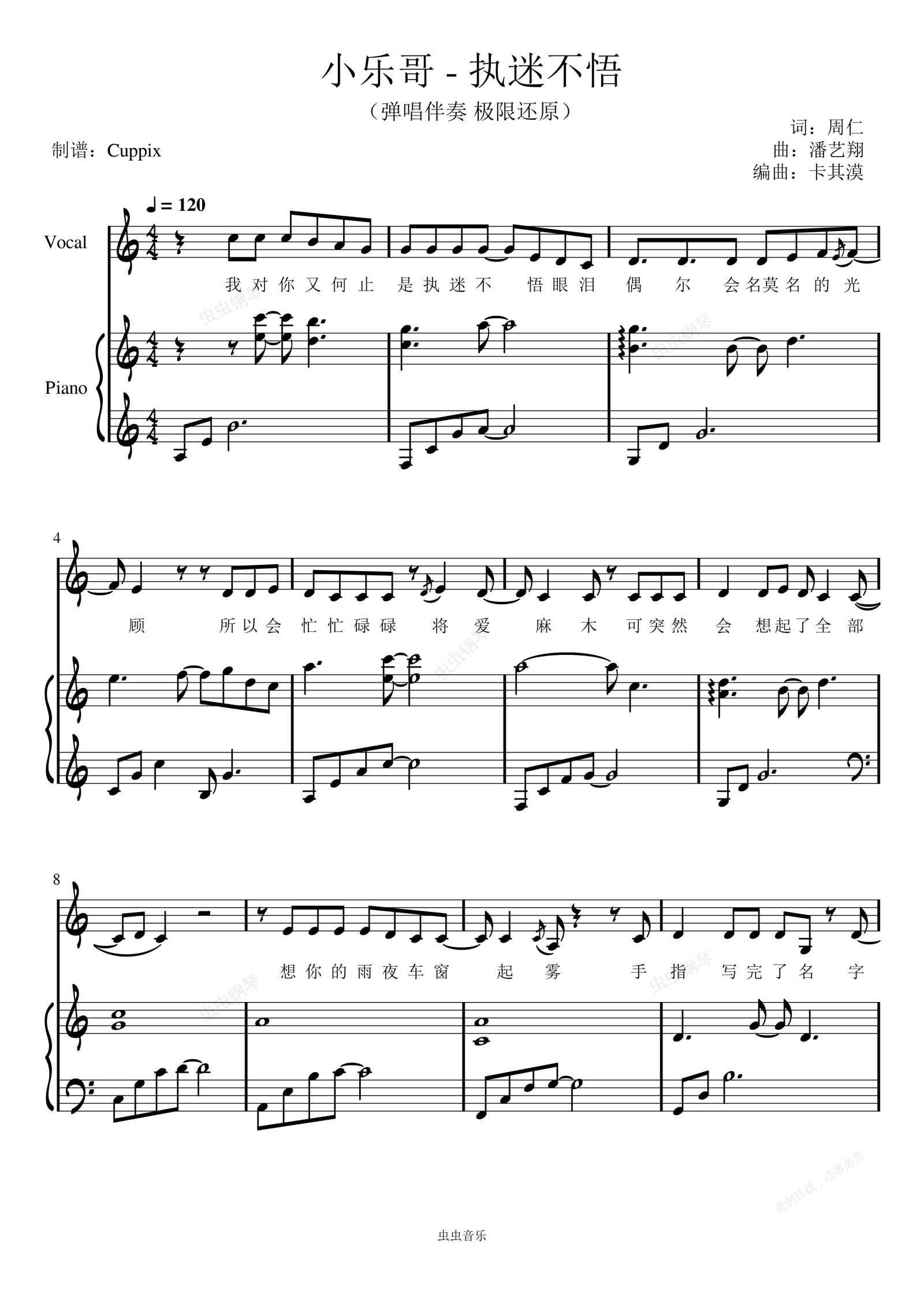 钢琴谱:小乐哥《执迷不悟》弹唱伴奏附词,极限还原