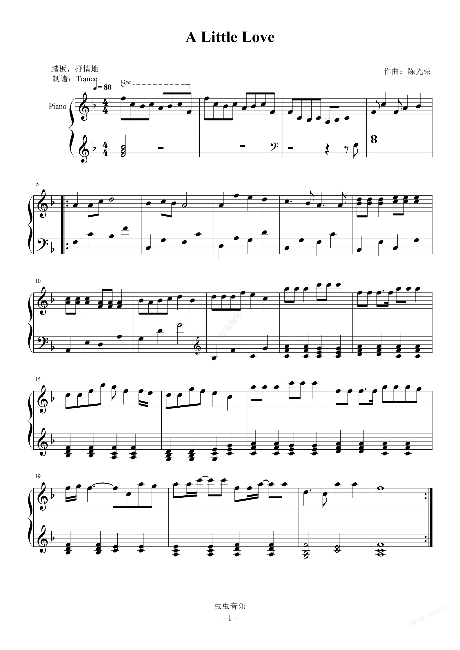 钢琴谱:《A Little Love》拜厄难度,简单好听