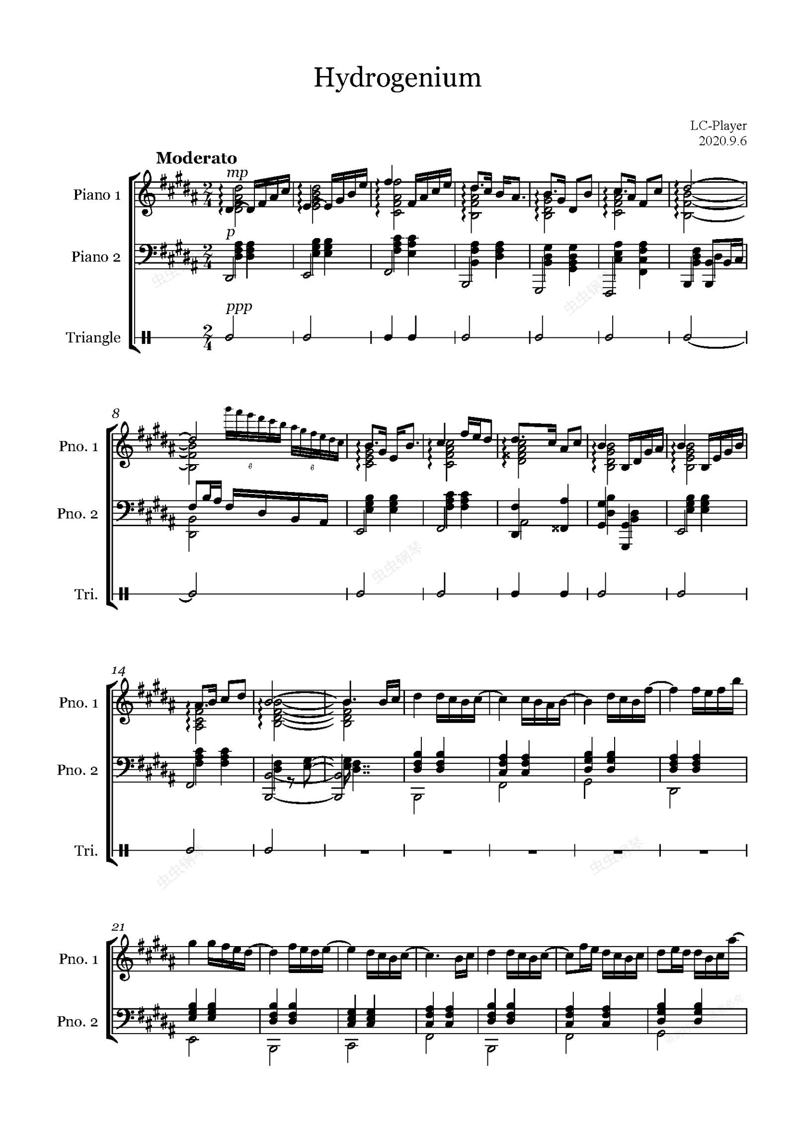 钢琴谱:【原创】无题曲(代号No. Hydrogenium)