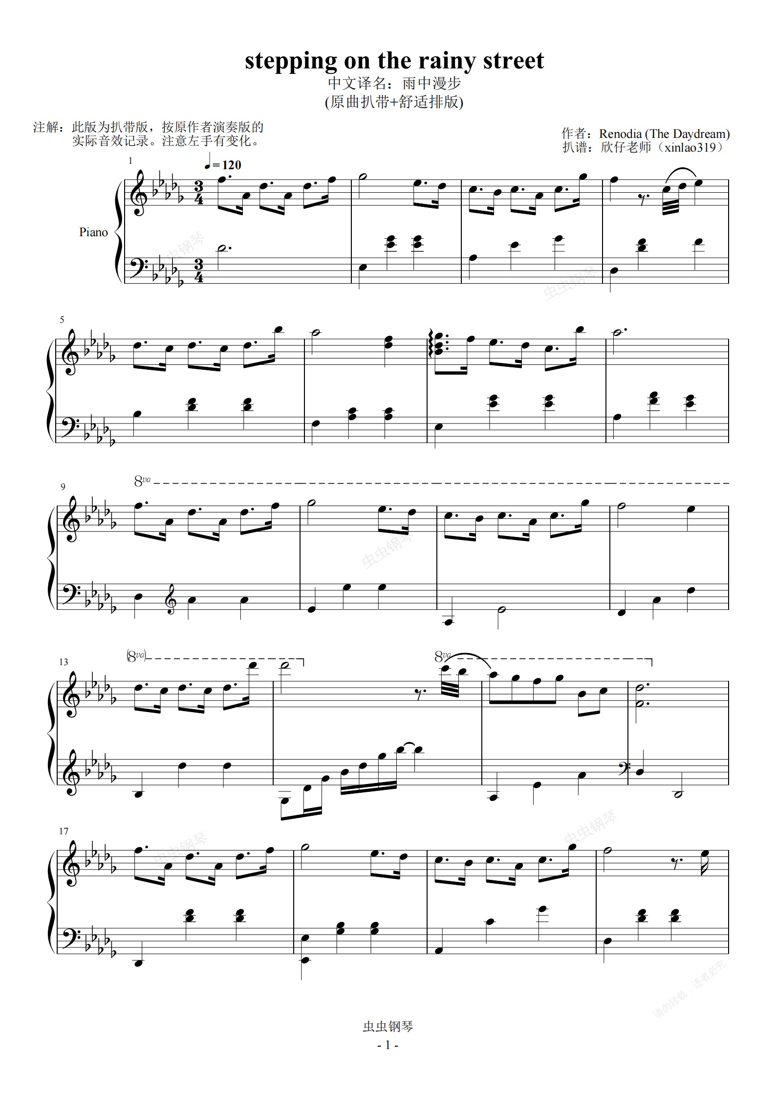 钢琴谱:原声版-雨中漫步-(stepping on the rainy street)