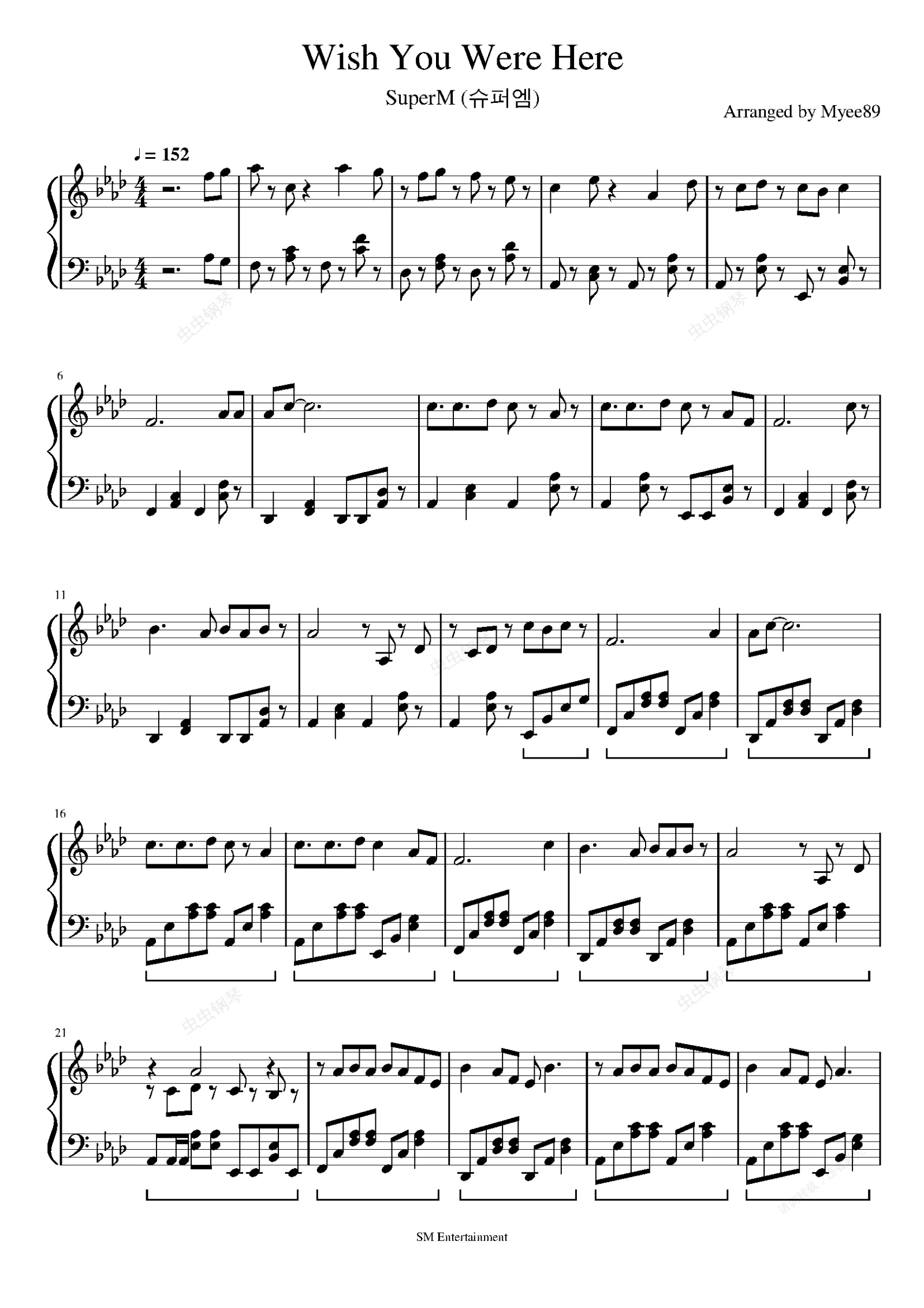 钢琴谱:SuperM - Wish You Were Here 钢琴谱