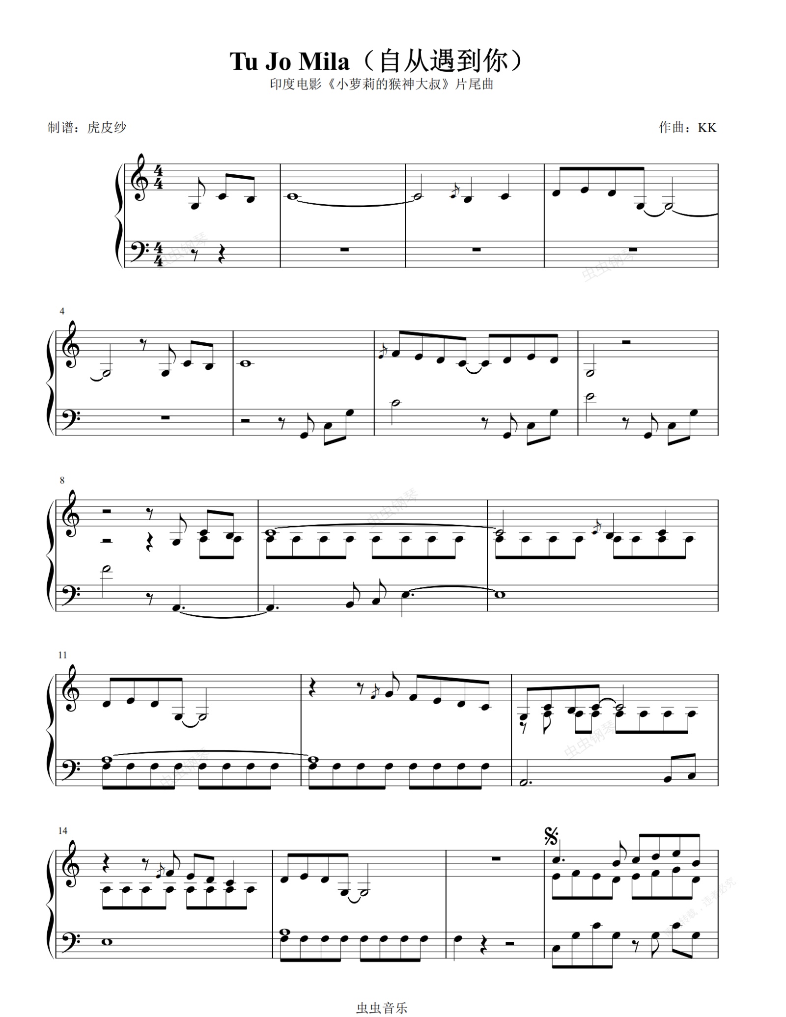 钢琴谱:小萝莉的猴神大叔插曲Tu Jo Mila