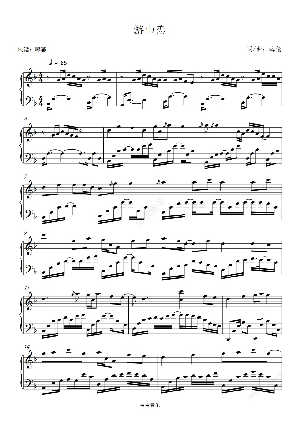 钢琴谱:游山恋