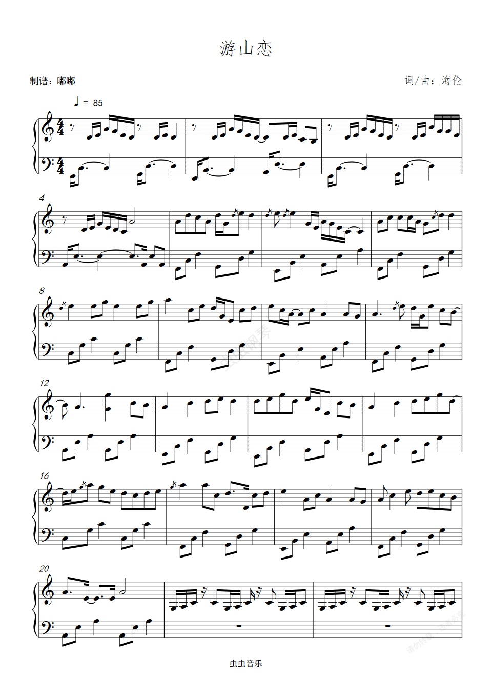 钢琴谱:游山恋