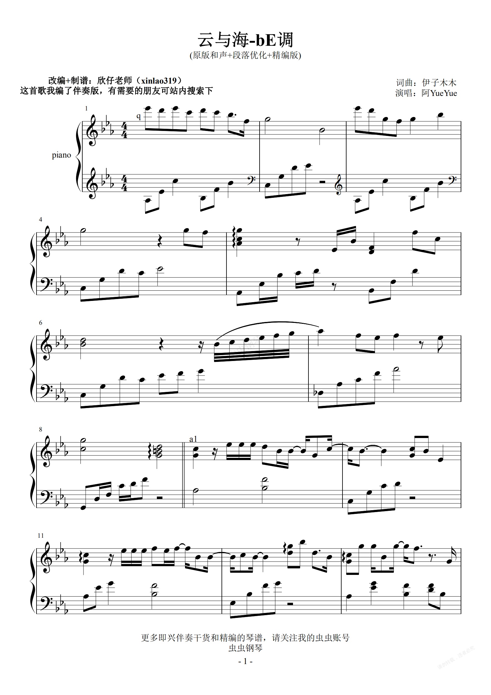 钢琴谱:云与海-bE(原曲和声+段落优化+精编版)