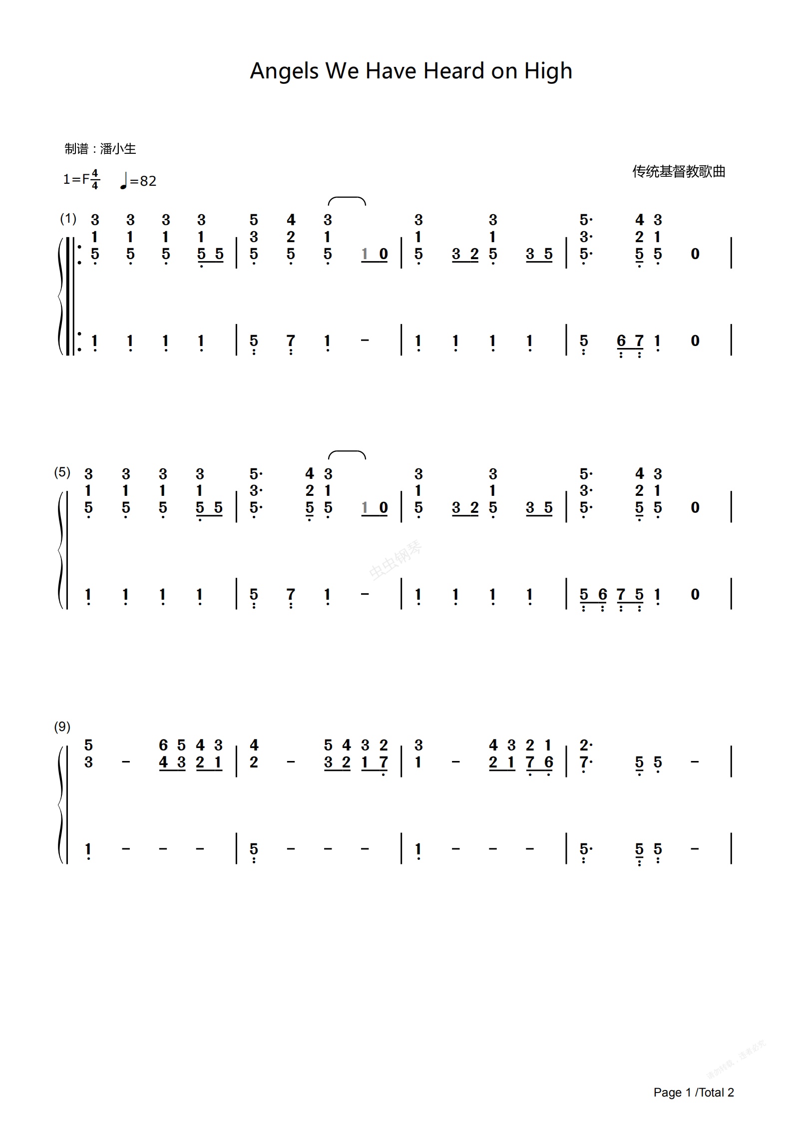 钢琴谱:[双手简谱] Angels We Have Heard on High 圣诞歌曲 简单版