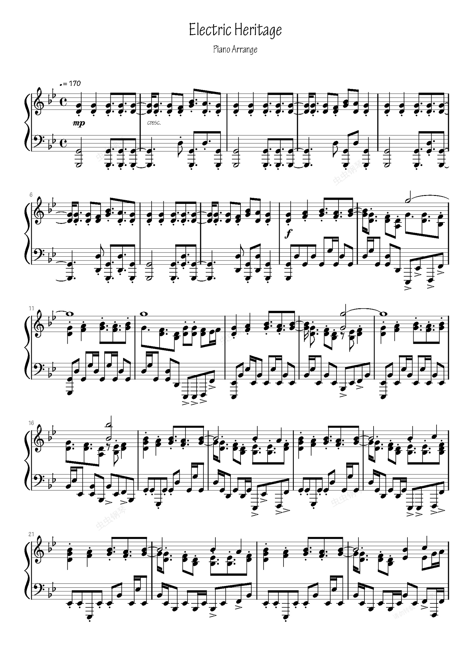 钢琴谱:【东方鬼形兽】Electric Heritage
