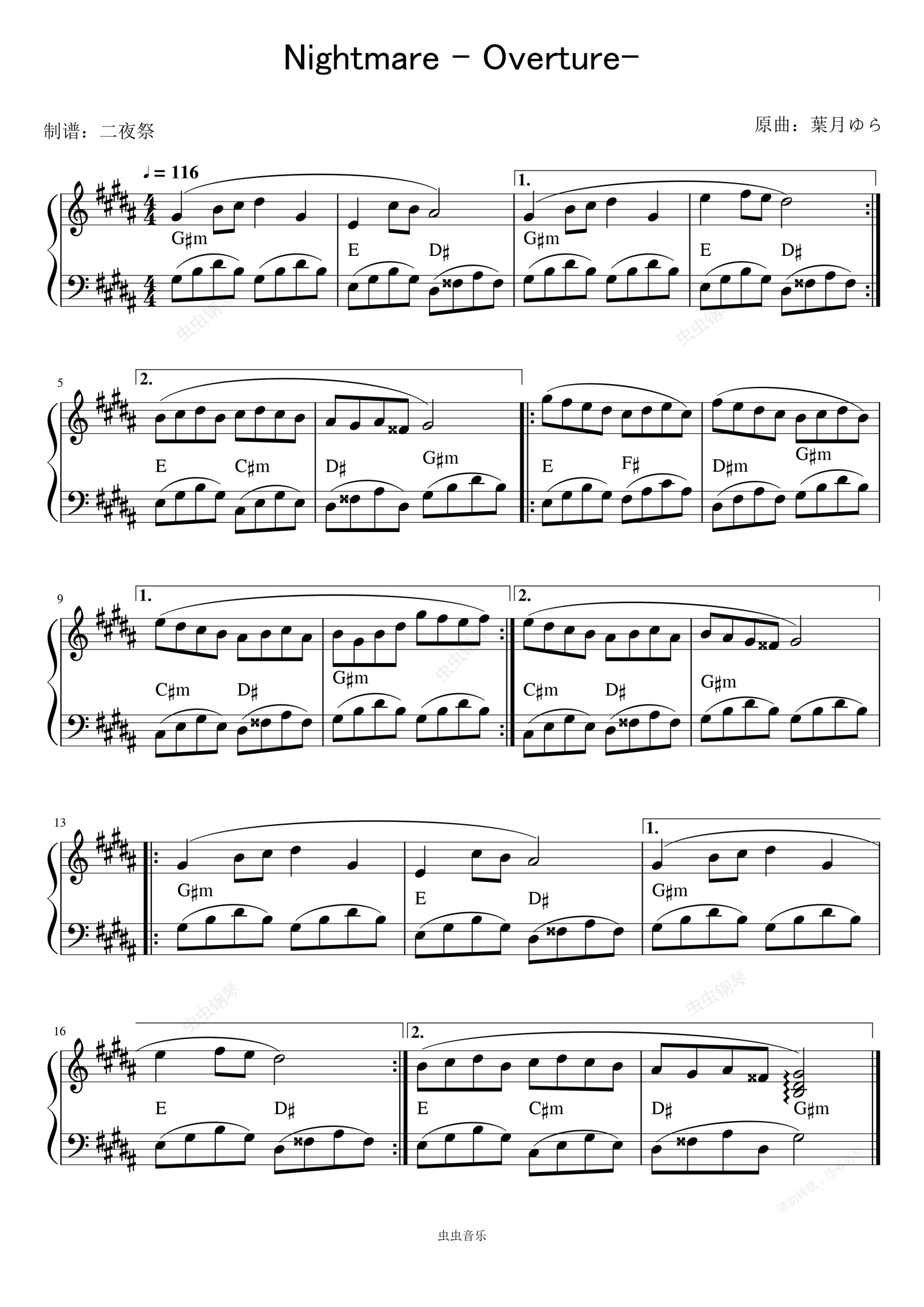 钢琴谱:【葉月ゆら】Nightmare -Overture- -重制版-