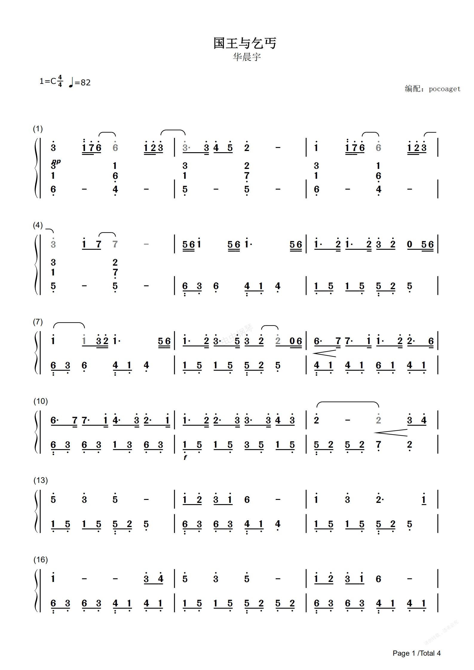 钢琴谱:《国王与乞丐》简谱,初学者优美版
