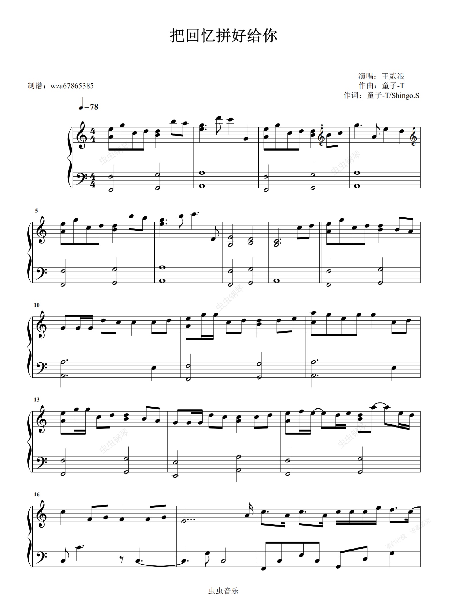 钢琴谱:把回忆拼好给你