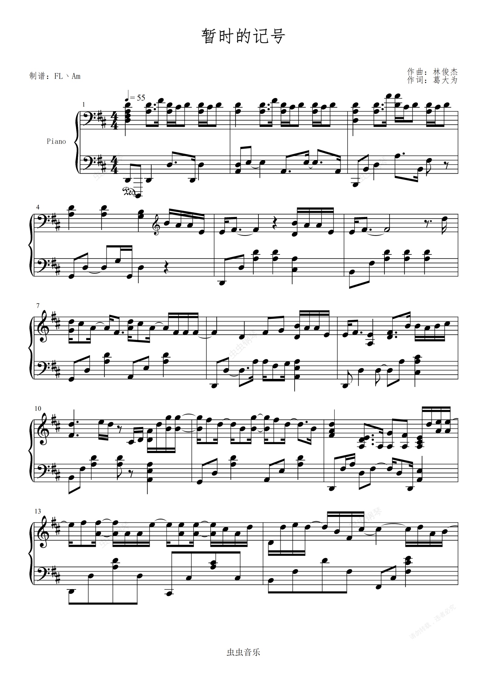 钢琴谱:暂时的记号