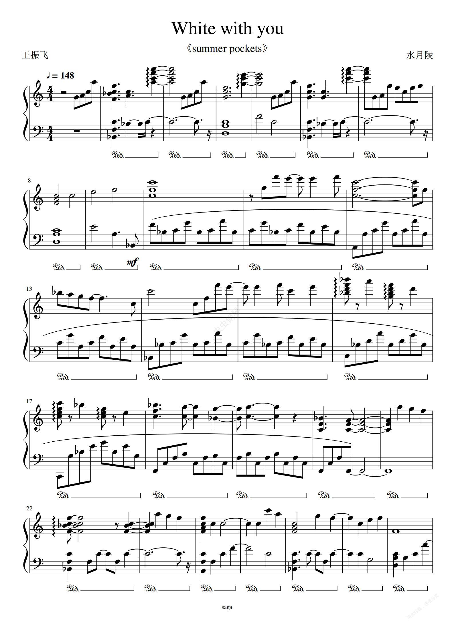 很喜欢水月陵大大的音乐,偶尔扒扒她的曲子,这首是gal夏日口袋白羽的角色曲,经由森藤晶司改编成的钢琴曲,网站上有一个很早版本的谱子,我觉得部分扒的不太完美,改了一部分,尽量按照原曲扒下来了,中间部分难度很高,推荐四手联弹。原曲有一部分是爵士,爵士大家都知道,节奏太过于自由,打谱很难出原曲节奏效果,那一部分就由大家自己摸索了,我扒的仅供参考,快结束的部分我考虑扒一个圆满的结尾所以改动了很多。因为我用的不是专业扒谱软件,为了凸显音频打了太多奏法记号有点乱请忽略,试听音效一般。扒的不好请指出错误,后续会改正重新上传。