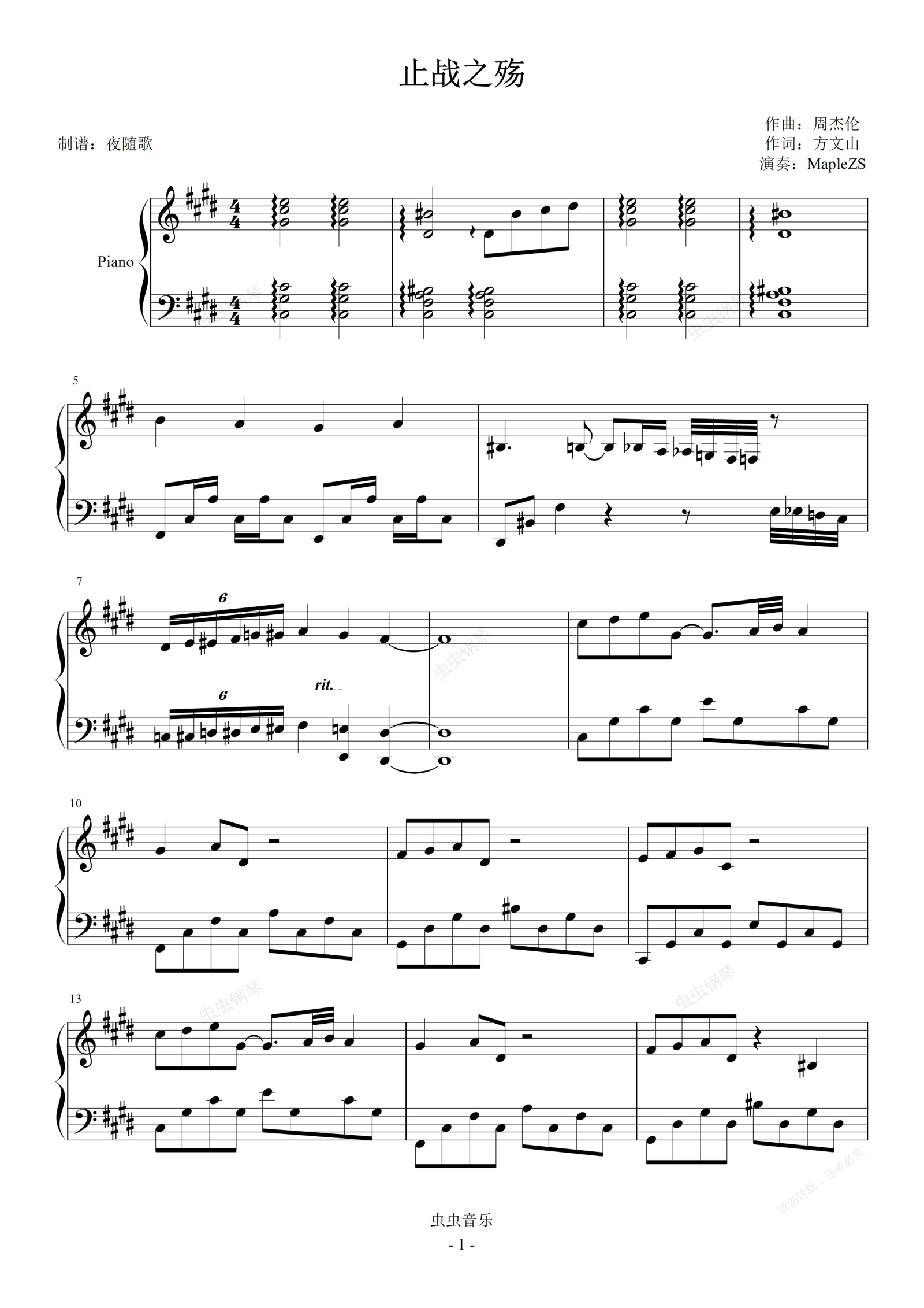 根据B站UP主的止战之殇改编,原本的编配对手残党太不友好了TvT (大神的版本我不配~~)就改了一版相对简单些的~~onl,间奏加了一段夜的第七章,速度上相对改变一下,可以自行解决。渐慢也自己加吧,软件里的实在找不到啊T·T