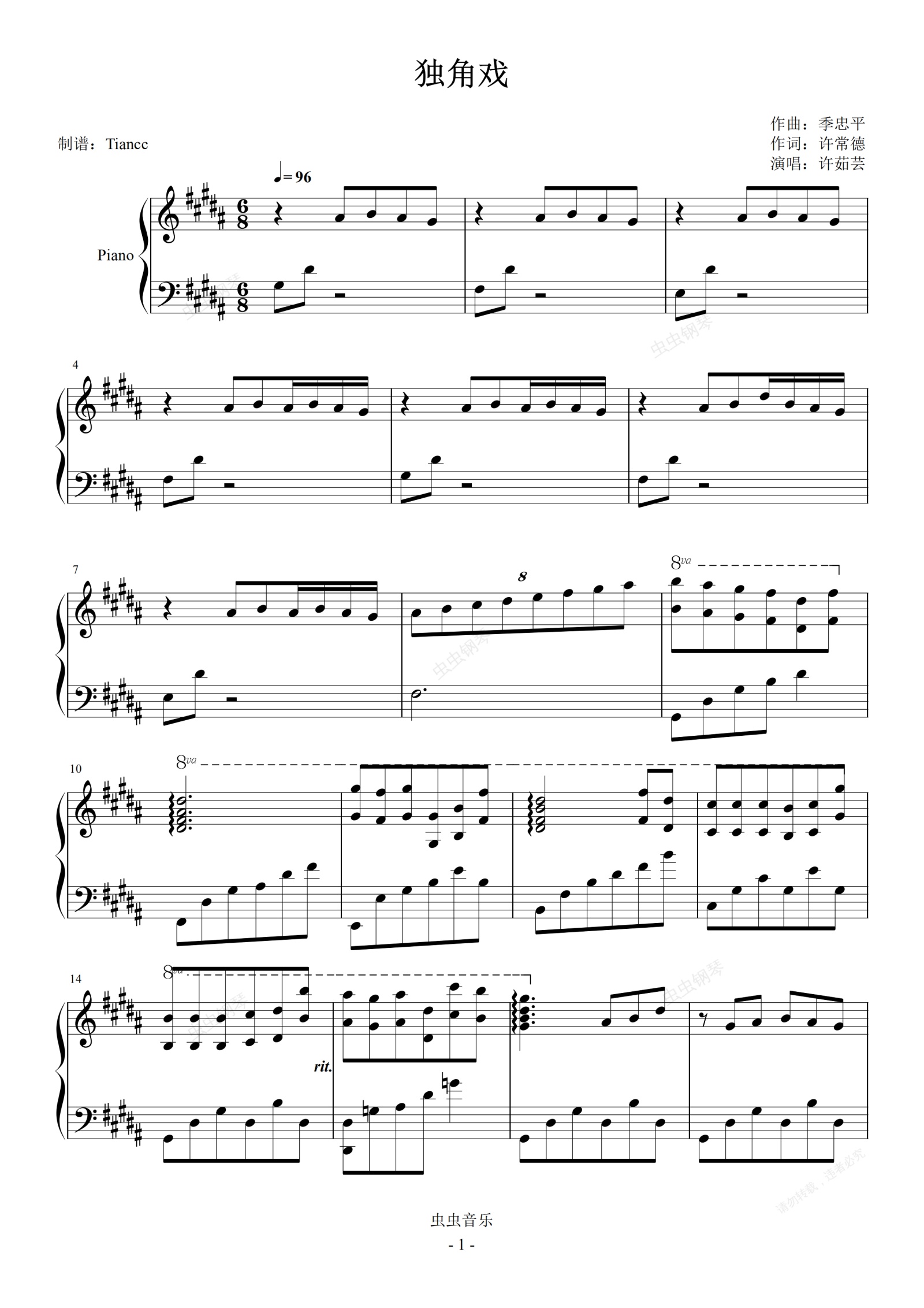 钢琴谱:《独角戏》完美可弹谱!超有感情的曲子