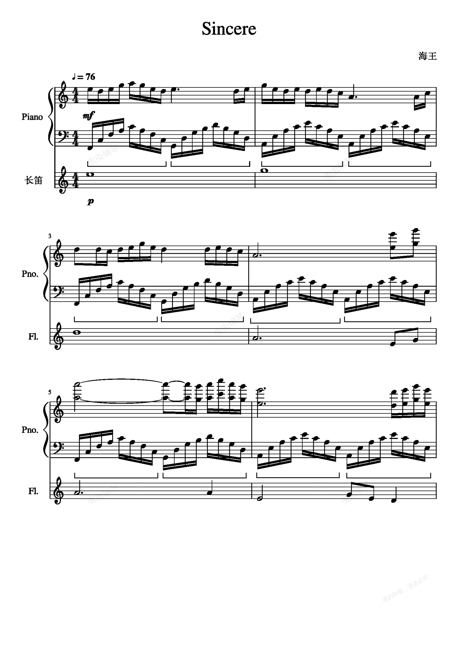 钢琴谱:Sincere