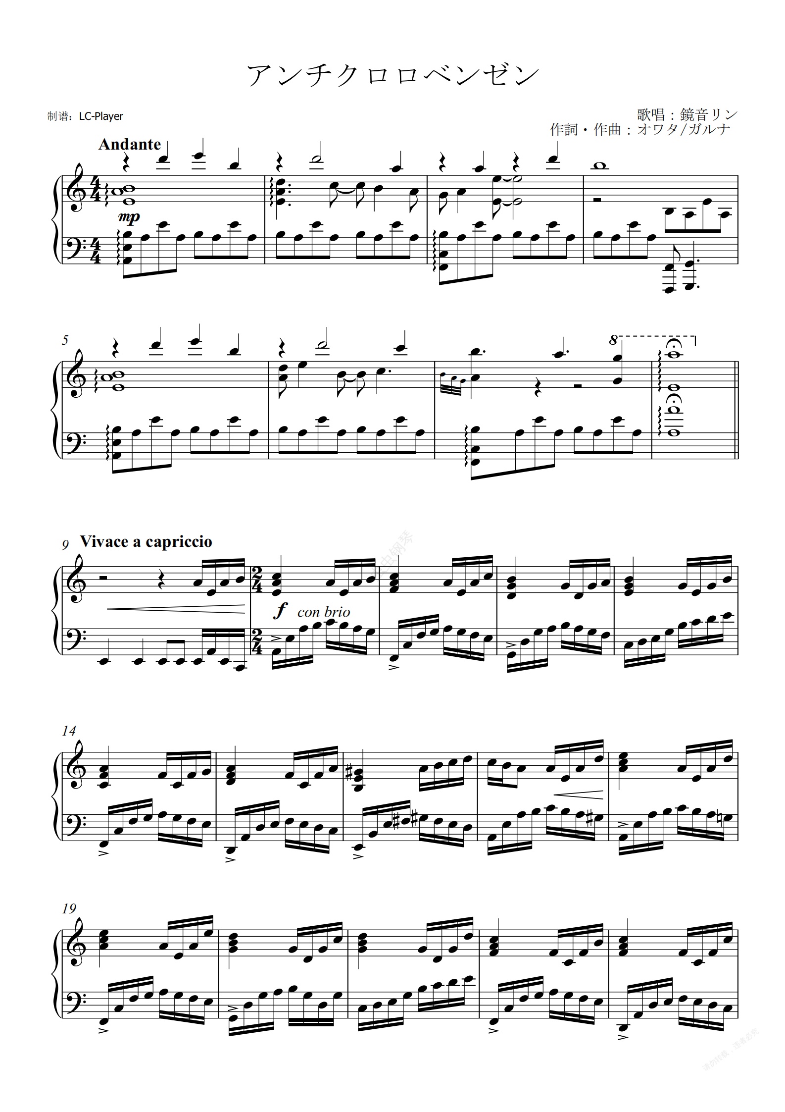 钢琴谱:アンチクロロベンゼン(反氯化苯/Anti-chlorobenzene)考古扒谱还原